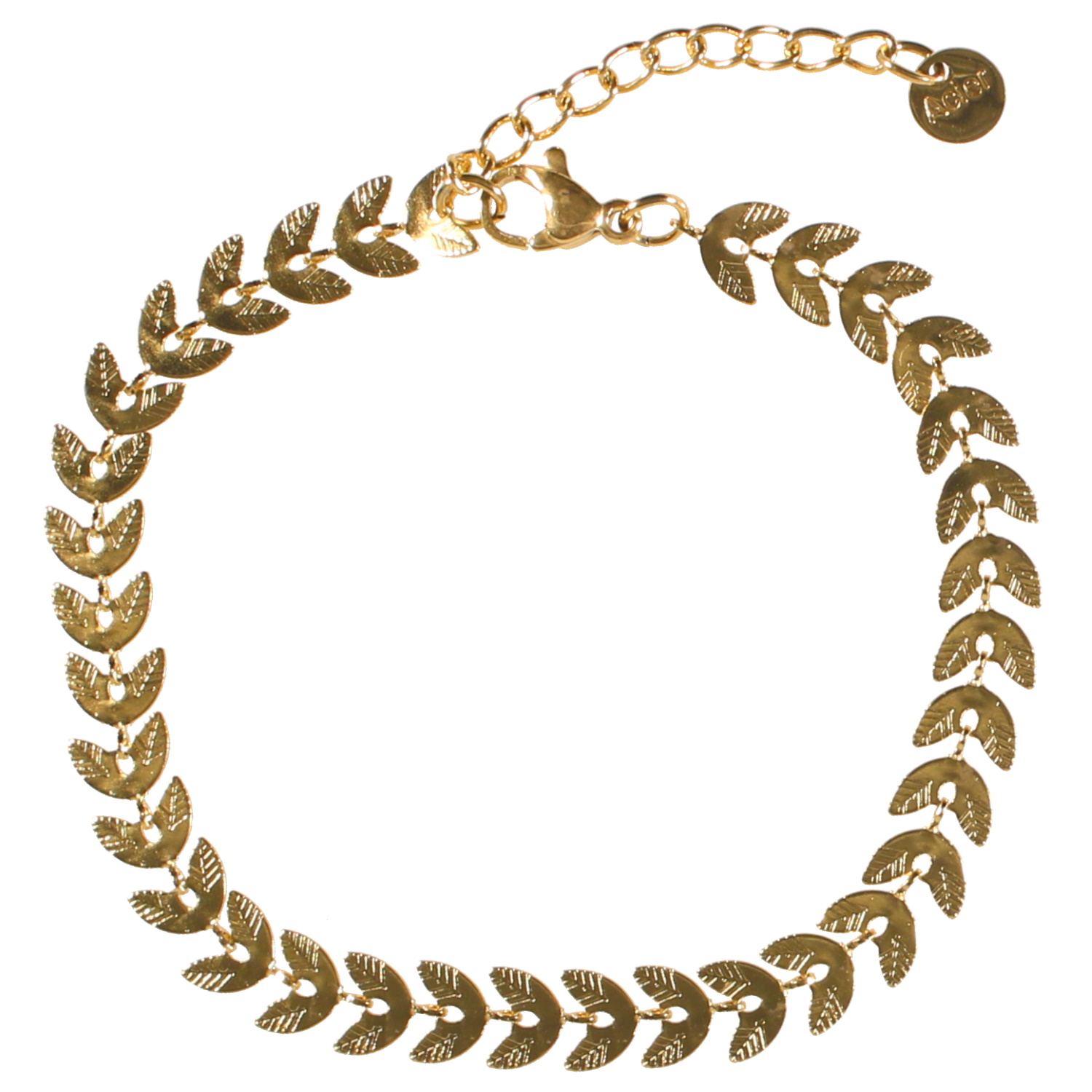 Description Bracelet au motif de branche de laurier en acier doré. Fermoir mousqueton avec 3 cm de rallonge. Cliquez sur une matière, un thème, une couleur ou une collection pour voir tous les articles associés.