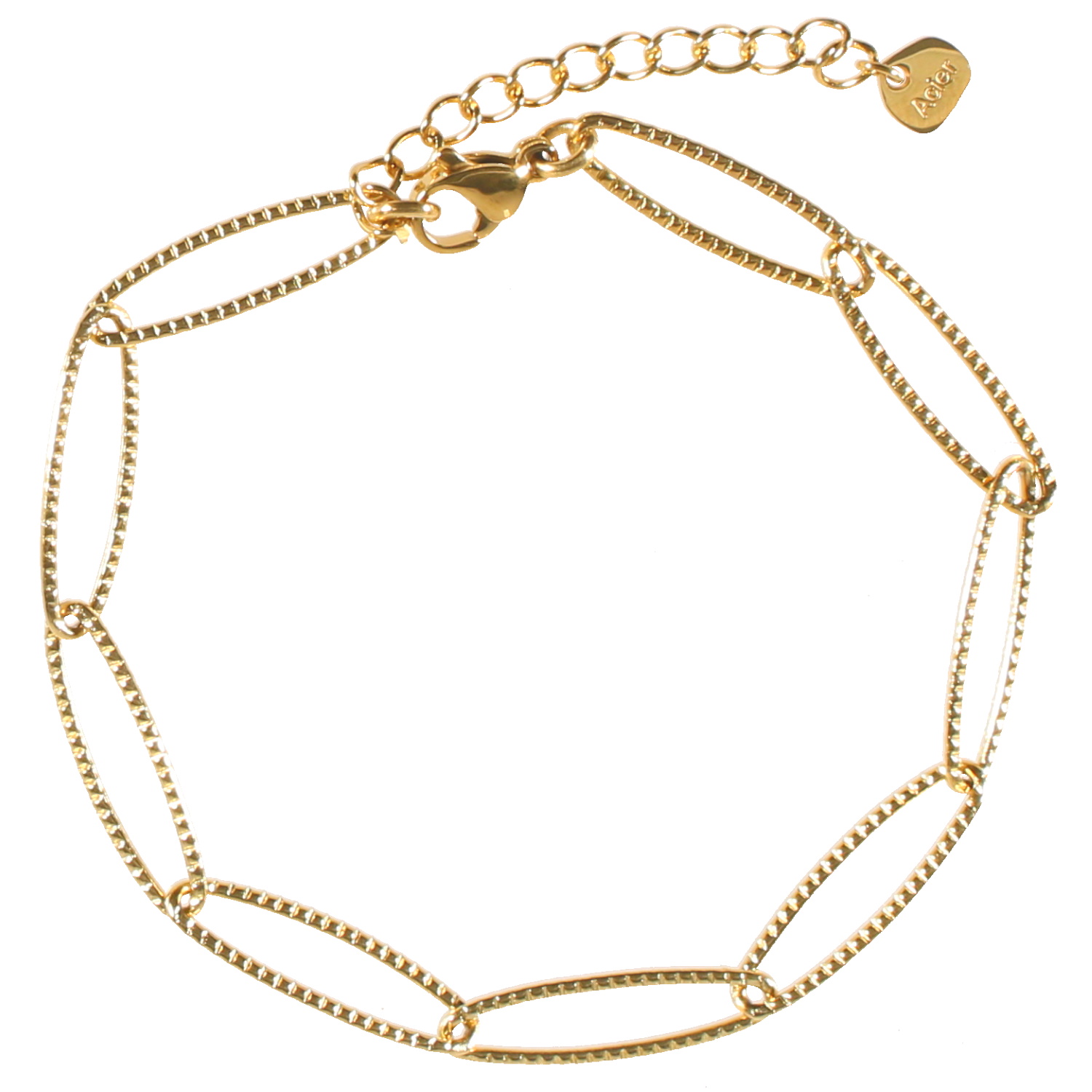 Description Bracelet en acier doré. Fermoir mousqueton avec 3.5 cm de rallonge. Cliquez sur une matière, un thème, une couleur ou une collection pour voir tous les articles associés.