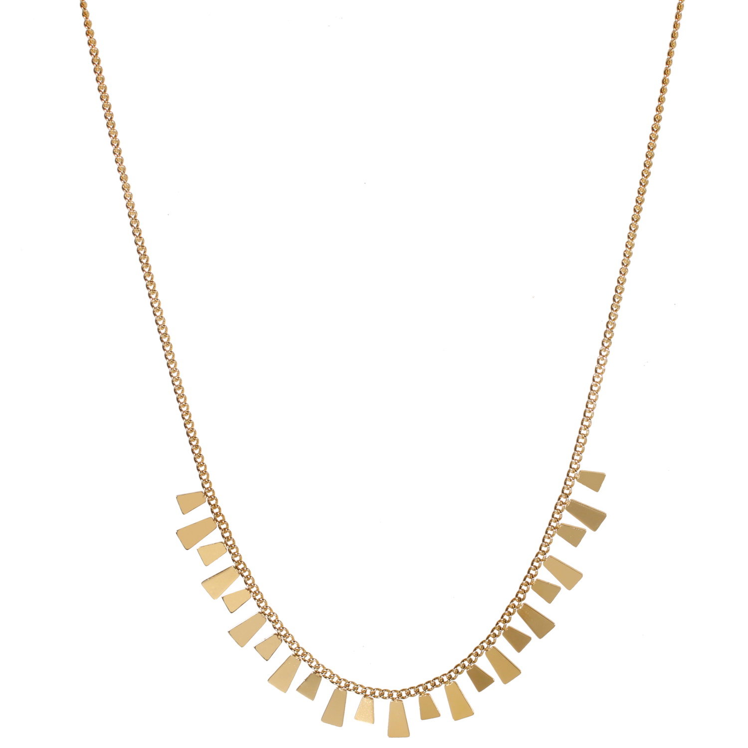 Description Collier composé d'une chaîne et pampilles en acier doré. Fermoir mousqueton avec 7 cm de rallonge. Longueur 39+7 cm [Guide des tailles] Largeur 10 mm Matière(s) Acier . L'acier utilisé dans la bijouterie existe sous plusieurs qualités. Nous utilisons principalement la qualité 316L, qualité qui est utilisée en chirurgie. Cet acier est donc inoxydable et reste très résistant. Fermoir Mousqueton Couleur(s) dominante(s) Doré Public Adolescent , Adulte . Genre Femme , Fille . Saison Indémodable . Cliquez sur une matière, un thème, une couleur ou une collection pour voir tous les articles associés.