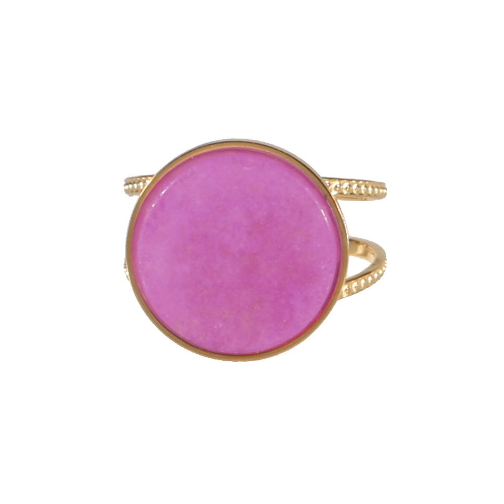 Description Bague en acier doré surmontée d'une pastille ronde en véritable pierre d'améthyste. Taille ajustable. Largeur 16 mm Matière(s) Acier , Pierre naturelle . L'acier utilisé dans la bijouterie existe sous plusieurs qualités. Nous utilisons principalement la qualité 316L, qualité qui est utilisée en chirurgie. Cet acier est donc inoxydable et reste très résistant. Fermoir Aucun Couleur(s) dominante(s) Doré , Violet Public Adolescent , Adulte . Genre Femme , Fille . Saison Indémodable . Cliquez sur une matière, un thème, une couleur ou une collection pour voir tous les articles associés.