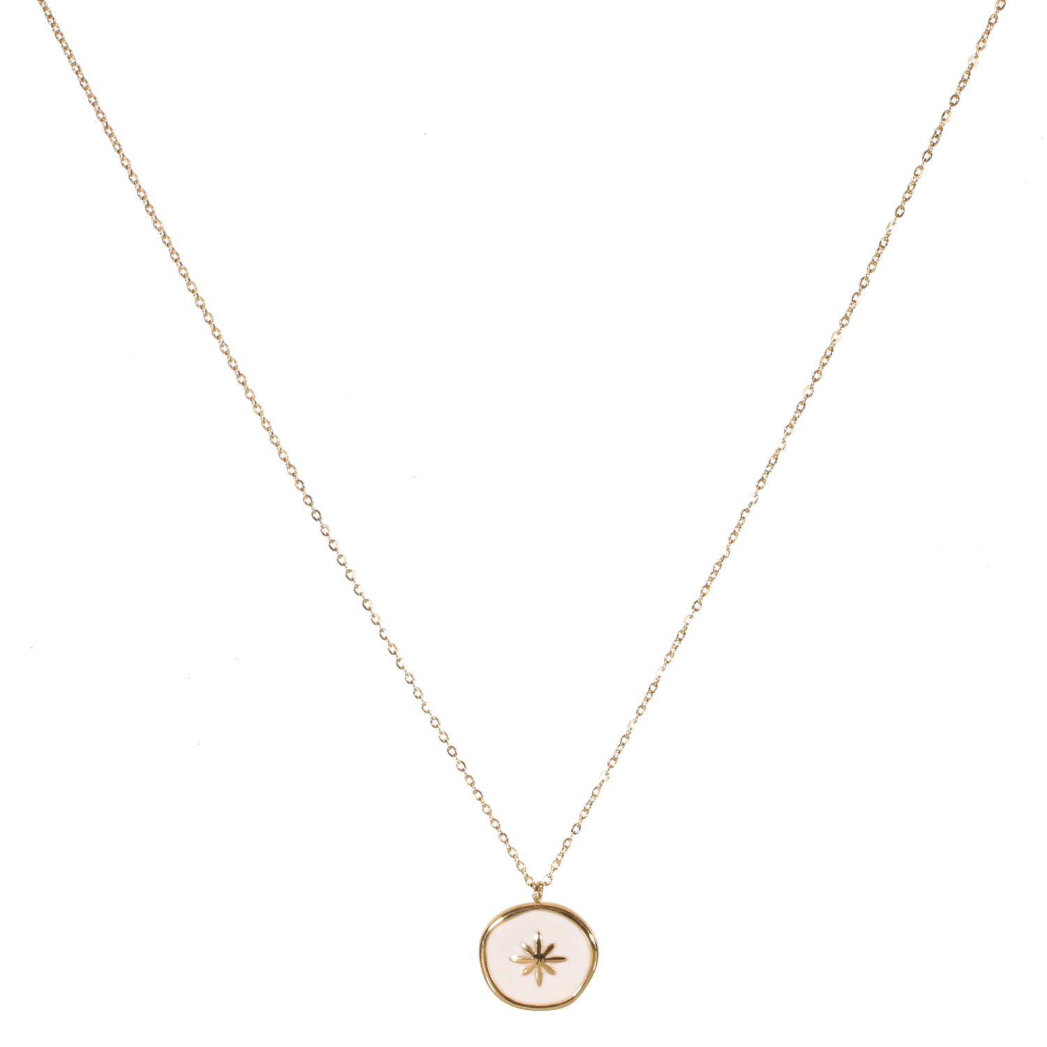 Description Collier composé d'une chaîne en acier doré et d'un pendentif rond pavé d'émail de couleur blanche avec le dessin d'une étoile en acier doré. Fermoir mousqueton avec 7 cm de rallonge. Longueur 38+7 cm [Guide des tailles] Matière(s) Acier , Email . L'acier utilisé dans la bijouterie existe sous plusieurs qualités. Nous utilisons principalement la qualité 316L, qualité qui est utilisée en chirurgie. Cet acier est donc inoxydable et reste très résistant. Fermoir Mousqueton À noter Pendentif 16 mm de diamètre Couleur(s) dominante(s) Blanc , Doré Public Adolescent , Adulte . Genre Femme , Fille . Saison Indémodable . Thème(s) Nature . Cliquez sur une matière, un thème, une couleur ou une collection pour voir tous les articles associés.