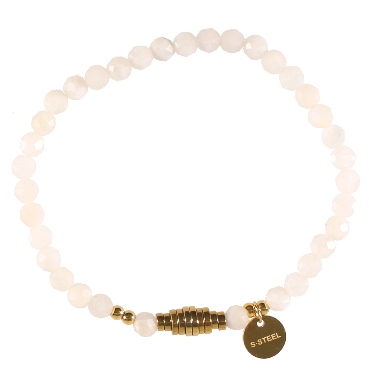 Description Bracelet élastique composé de perles de couleur blanche et de perles cylindriques en acier doré. Longueur 15 cm [Guide des tailles] Largeur 5 mm Matière(s) Acier , Rocaille . L'acier utilisé dans la bijouterie existe sous plusieurs qualités. Nous utilisons principalement la qualité 316L, qualité qui est utilisée en chirurgie. Cet acier est donc inoxydable et reste très résistant. Fermoir Aucun Couleur(s) dominante(s) Blanc , Doré Public Adolescent , Adulte . Genre Femme , Fille . Saison Indémodable . Cliquez sur une matière, un thème, une couleur ou une collection pour voir tous les articles associés.