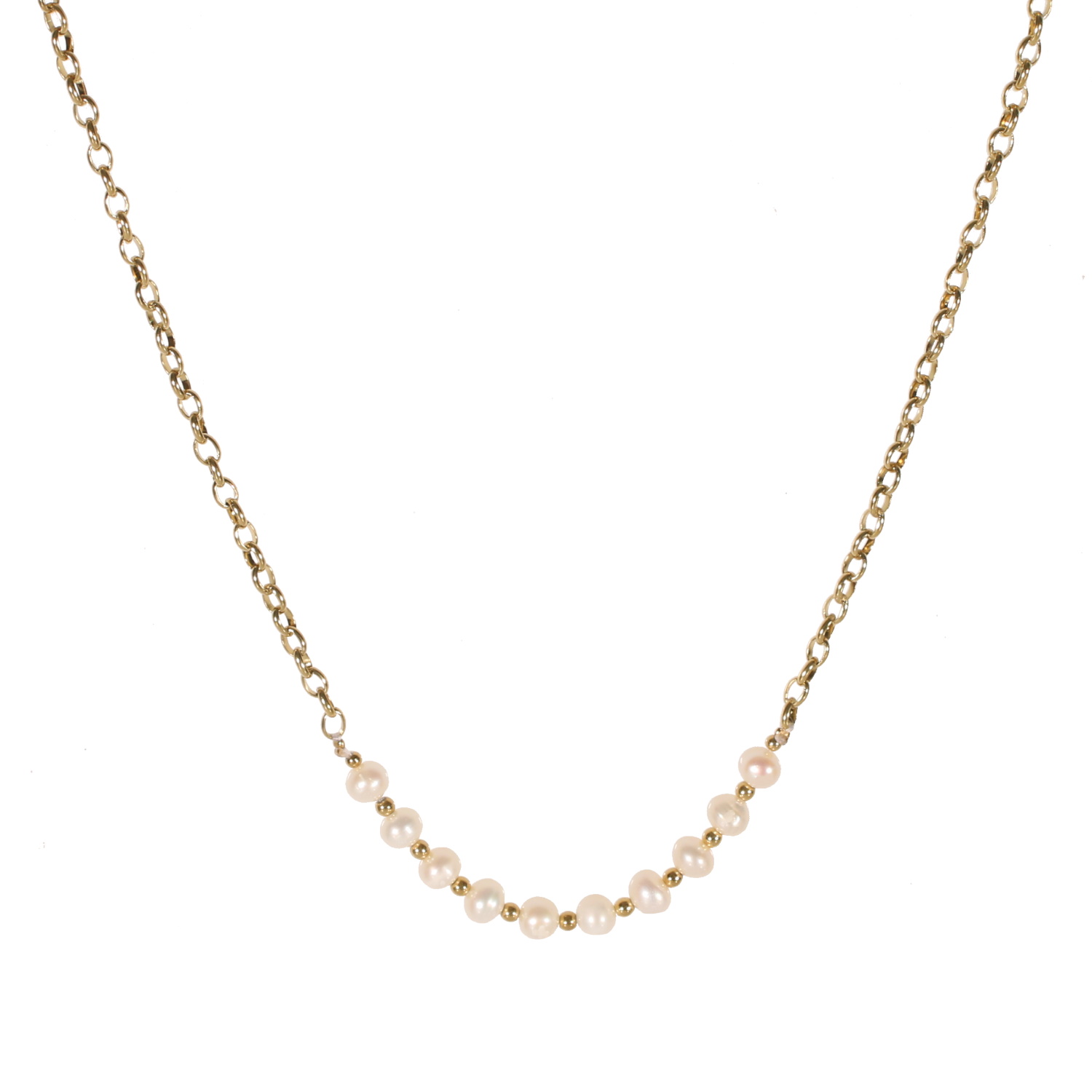 Description Collier composé d'une chaîne en acier doré et de véritables perles de nacre. Fermoir mousqueton avec 3 cm de rallonge. Cliquez sur une matière, un thème, une couleur ou une collection pour voir tous les articles associés.