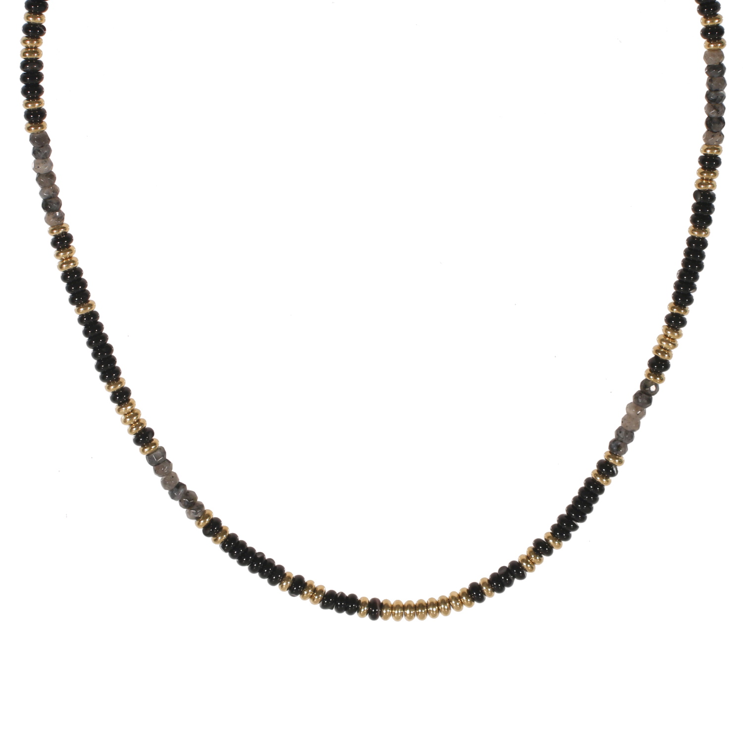 Collier composé d'une chaîne avec perles en acier doré et de perles en véritable pierre d'agate noire.