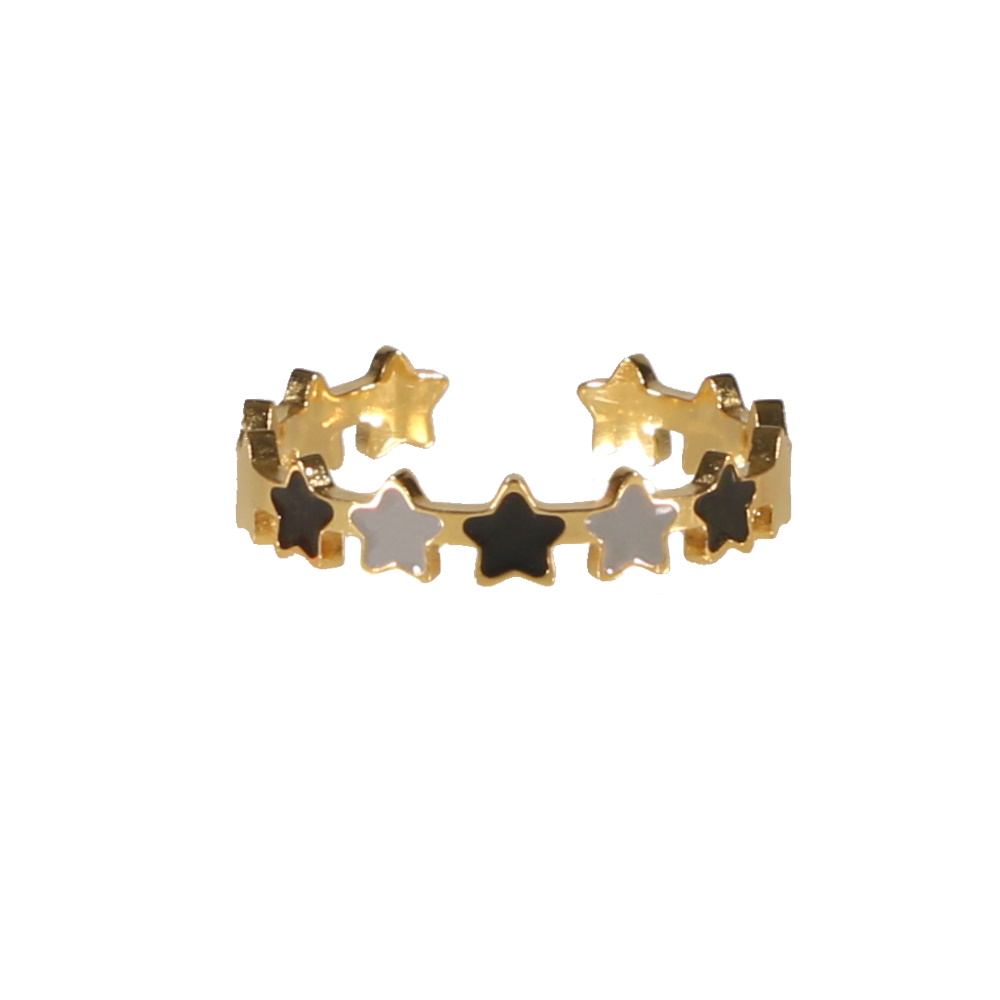 Description Bague composée d'étoiles en acier doré et certaines pavées d'émail de couleur noire et grise.Largeur 4 mm Matière(s) Acier , Email . L'acier utilisé dans la bijouterie existe sous plusieurs qualités. Nous utilisons principalement la qualité 316L, qualité qui est utilisée en chirurgie. Cet acier est donc inoxydable et reste très résistant. Fermoir Aucun Couleur(s) dominante(s) Gris , Noir Public Adolescent , Adulte . Genre Femme , Fille . Saison Indémodable . Thème(s) Nature . Cliquez sur une matière, un thème, une couleur ou une collection pour voir tous les articles associés.