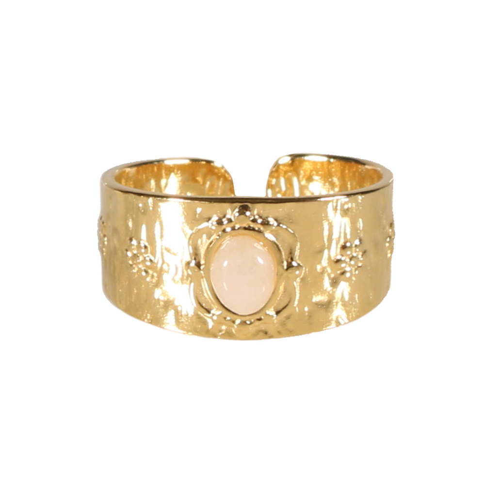 Bague en acier doré surmontée d'un cabochon en véritable pierre de lune.