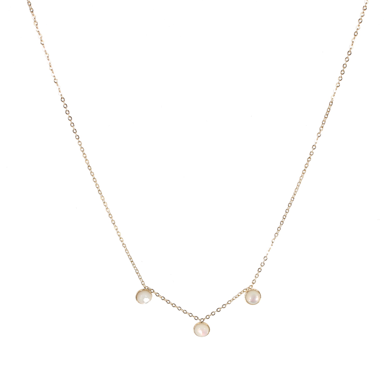 Description Collier composé d'une chaîne en acier doré et de trois cabochons de nacre. Fermoir mousqueton avec 5 cm de rallonge. Longueur 38+5 cm [Guide des tailles] Largeur 6 mm Matière(s) Acier , Nacre . L'acier utilisé dans la bijouterie existe sous plusieurs qualités. Nous utilisons principalement la qualité 316L, qualité qui est utilisée en chirurgie. Cet acier est donc inoxydable et reste très résistant. Fermoir Mousqueton Couleur(s) dominante(s) Blanc , Doré Public Adolescent , Adulte . Genre Femme , Fille . Saison Indémodable . Cliquez sur une matière, un thème, une couleur ou une collection pour voir tous les articles associés.