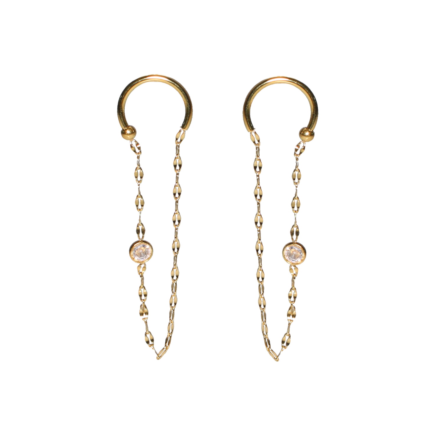 Description Boucles d'oreilles pendantes composées d'un cercle ouvert avec une chaîne en acier doré et d'un cristal serti clos. Largeur 12 mm Hauteur 48 mm Matière(s) Acier , Verre . L'acier utilisé dans la bijouterie existe sous plusieurs qualités. Nous utilisons principalement la qualité 316L, qualité qui est utilisée en chirurgie. Cet acier est donc inoxydable et reste très résistant. Fermoir Tiges poussettes Couleur(s) dominante(s) Doré Public Adolescent , Adulte . Genre Femme , Fille . Saison Indémodable . Cliquez sur une matière, un thème, une couleur ou une collection pour voir tous les articles associés.