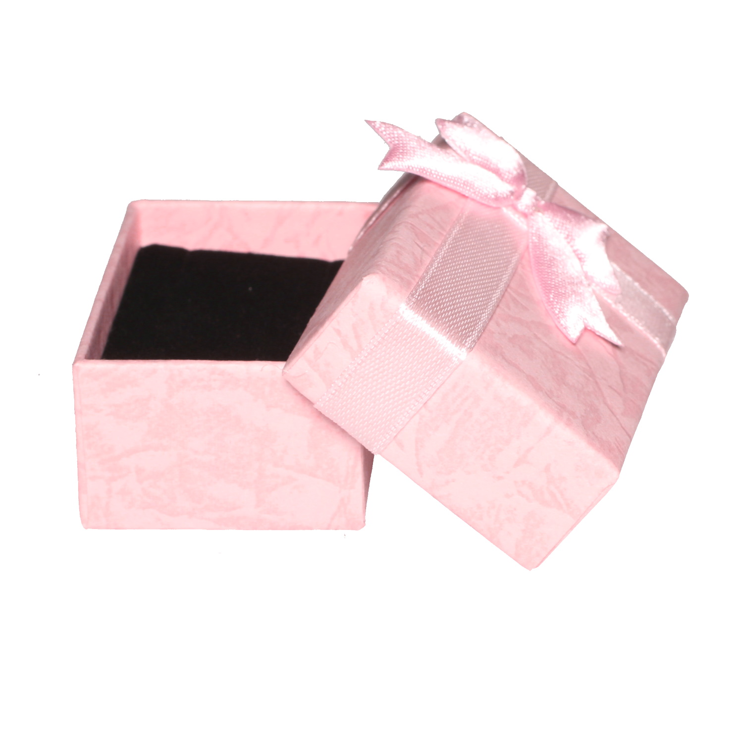 Ecrin boîte cadeau pour parure ou bague en carton de couleur rose avec un nœud papillon en textile de couleur rose.