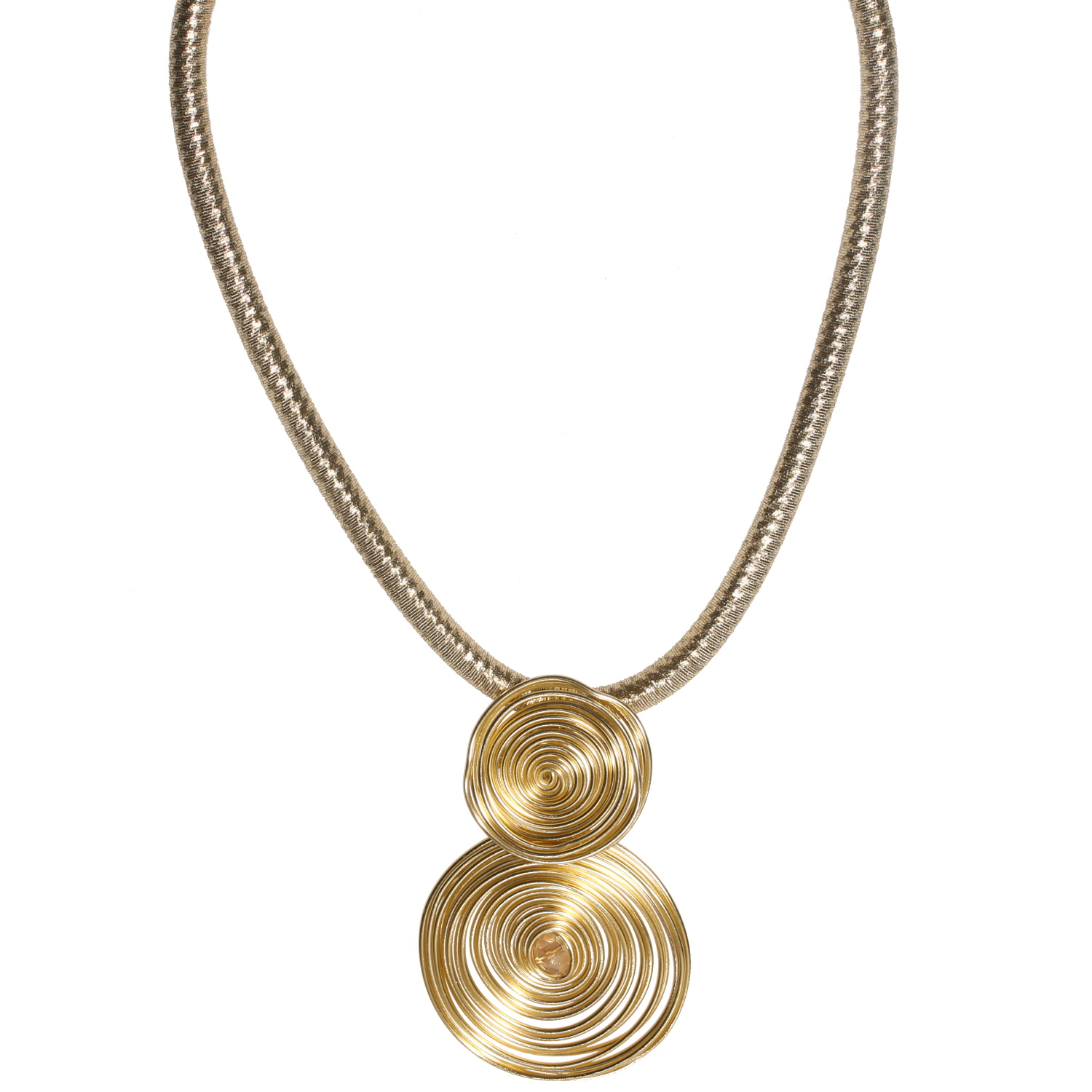 Description Collier composé d'un cordon de fils de couleur doré et d'un pendentif de spirales en fil de métal doré avec un cristal doré. Fermoir mousqueton en métal doré avec 5 cm de rallonge. Cliquez sur une matière, un thème, une couleur ou une collection pour voir tous les articles associés.