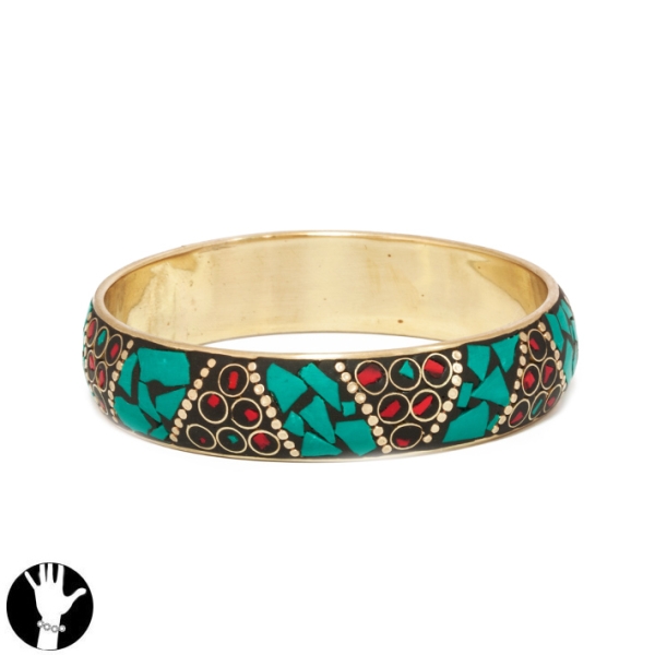 Bracelet fantaisie rigide en métal doré vieilli et pierres naturelles. Jonc Rigide Rond  Adulte Femme Indémodable