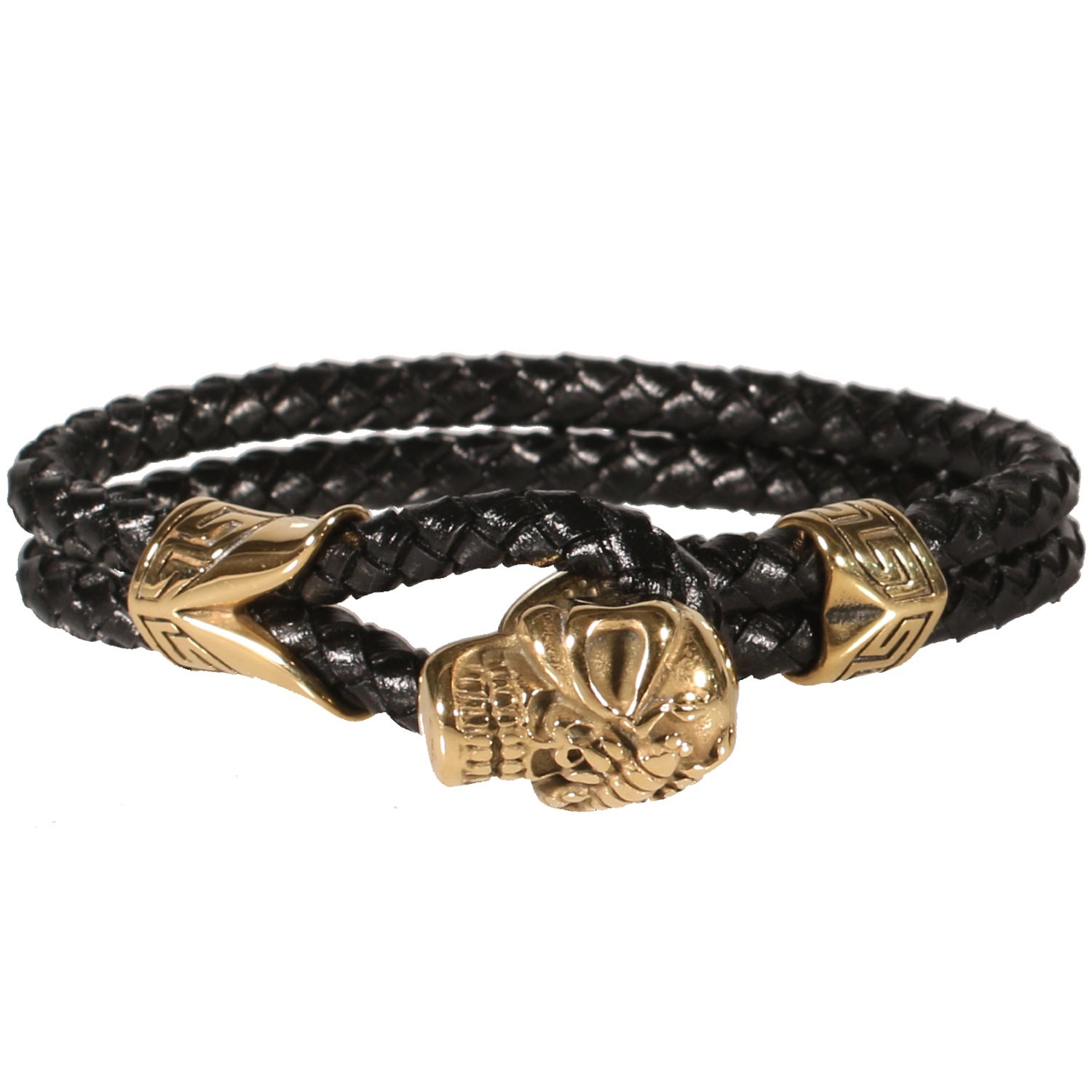 Description Bracelet multi rangs pour homme en cuir et tête de mort en métal doré. 2 rangs. Cliquez sur une matière, un thème, une couleur ou une collection pour voir tous les articles associés.