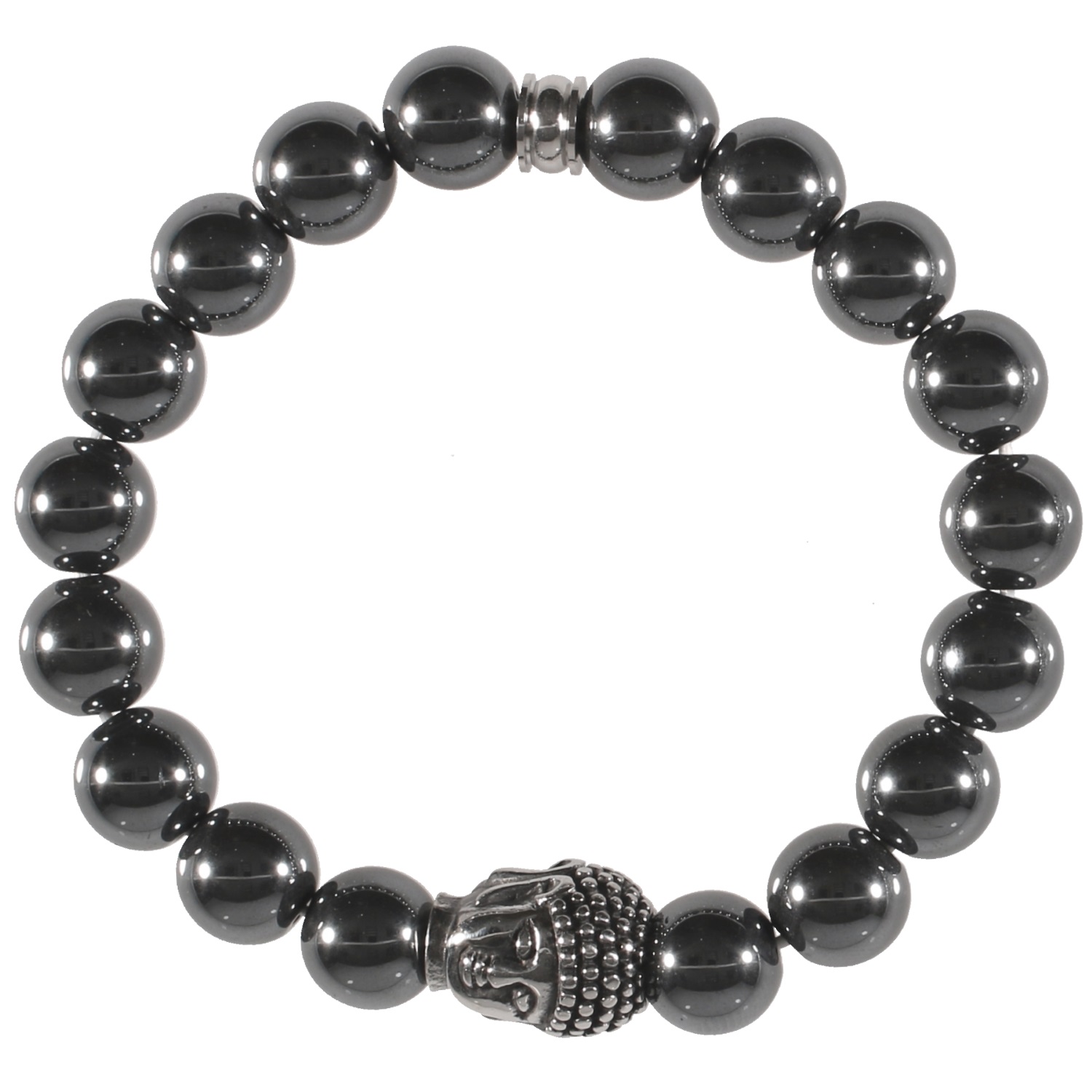 Description Bracelet élastique avec perles et tête de Bouddha en acier. Cliquez sur une matière, un thème, une couleur ou une collection pour voir tous les articles associés.