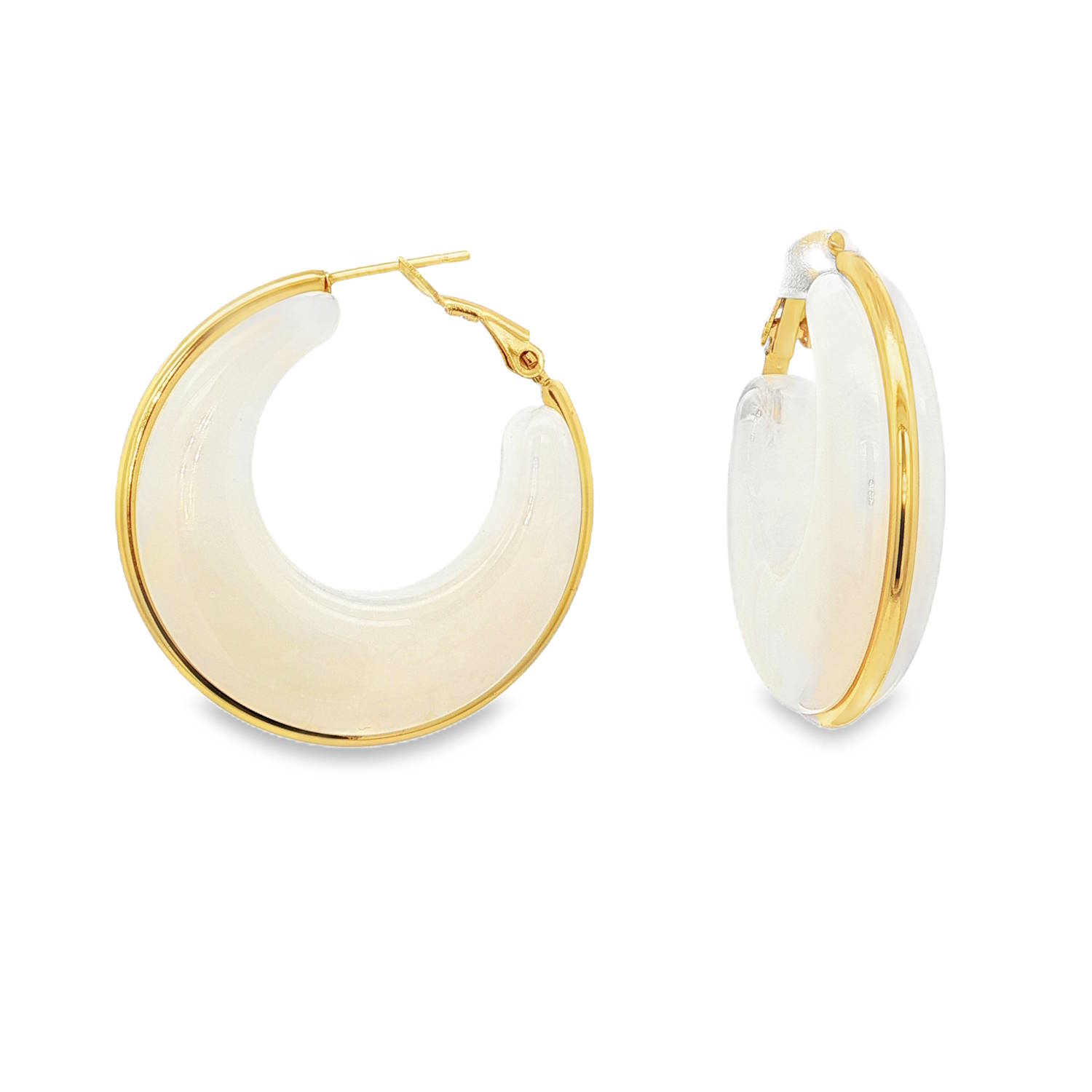 Description Sublimez votre style avec ces boucles d'oreilles créoles, rehaussées d'une élégante monture en acier doré. Un design audacieux et raffiné qui apportera une touche de lumière à votre visage. Parfaites pour toutes les occasions, elles deviendront un incontournable de votre collection de bijoux. Largeur 9 mm Diamètre 20/36 mm [Guide des tailles] Matière(s) Acier , Résine . L'acier utilisé dans la bijouterie existe sous plusieurs qualités. Nous utilisons principalement la qualité 316L, qualité qui est utilisée en chirurgie. Cet acier est donc inoxydable et reste très résistant. Fermoir Charnière Couleur(s) dominante(s) Blanc , Doré Public Adolescent , Adulte . Genre Femme , Fille . Saison Indémodable . Cliquez sur une matière, un thème, une couleur ou une collection pour voir tous les articles associés.