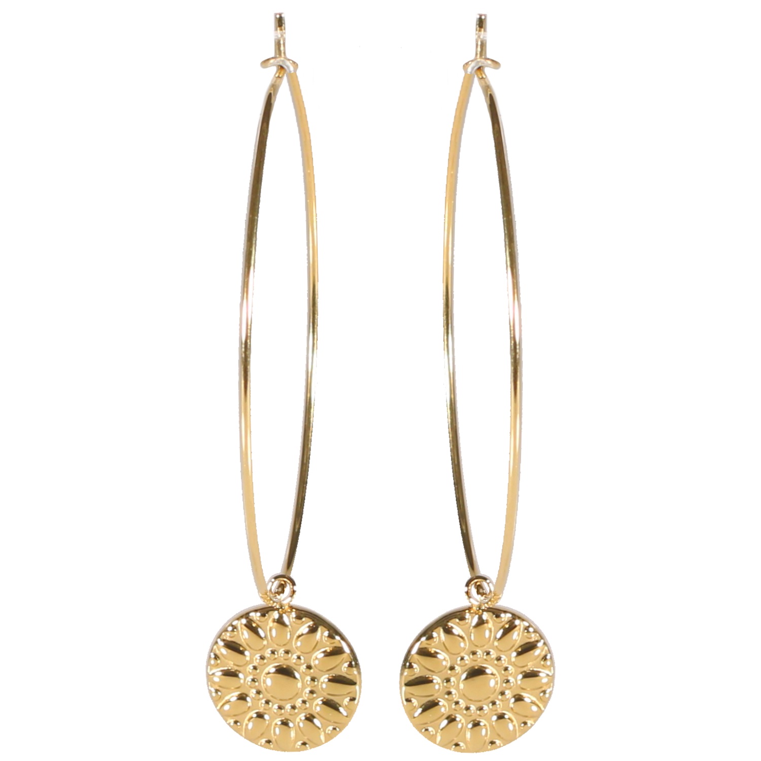 Description Boucles d'oreilles créoles avec pastille en acier doré. Largeur 12 mm Hauteur 54 mm Diamètre 40 mm Matière(s) Acier . L'acier utilisé dans la bijouterie existe sous plusieurs qualités. Nous utilisons principalement la qualité 316L, qualité qui est utilisée en chirurgie. Cet acier est donc inoxydable et reste très résistant. Fermoir Autre Couleur(s) dominante(s) Doré Public Adolescent , Adulte . Genre Femme , Fille . Saison Indémodable . Cliquez sur une matière, un thème, une couleur ou une collection pour voir tous les articles associés.
