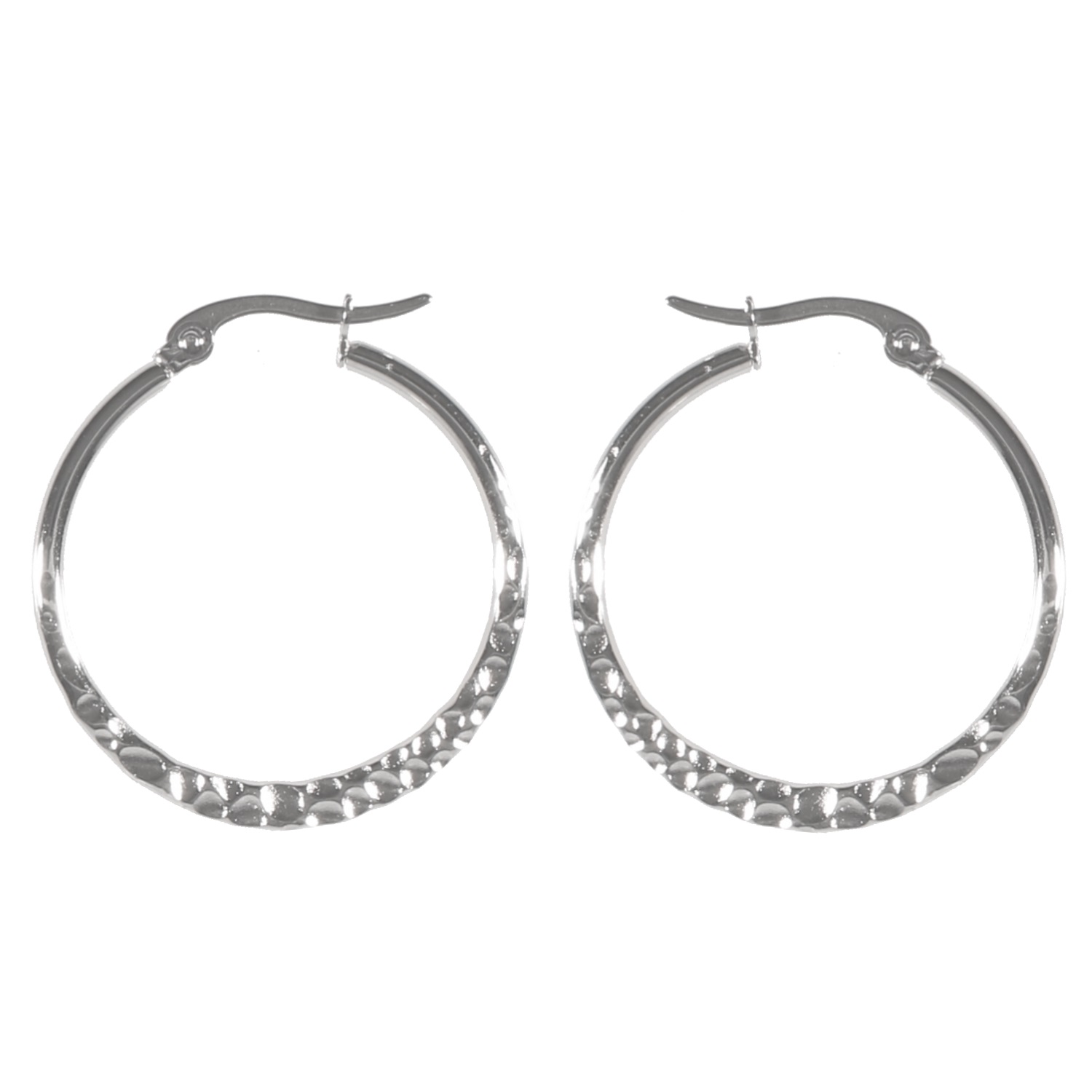 Description Boucles d'oreilles créoles martelées en acier argenté. Cliquez sur une matière, un thème, une couleur ou une collection pour voir tous les articles associés.