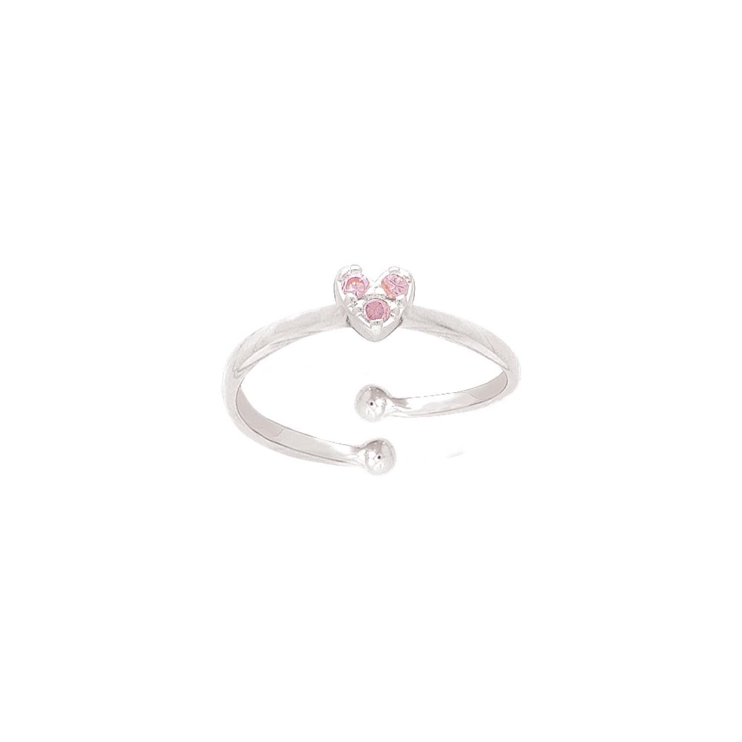 Bague pour enfant en argent 925 rhodié surmontée d'un cœur serti d'oxydes de zirconium roses.br/>Taille 43 ajustable.