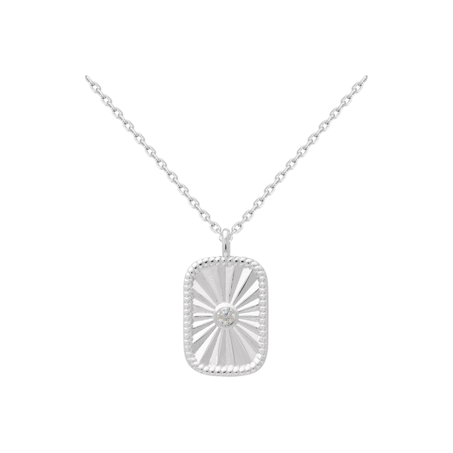 Description Collier composé d'une chaîne en argent 925/000 et d'un pendentif médaillon rectangulaire avec motifs ciselés et serti d'un oxyde de zirconium blanc. Fermoir anneau ressort avec 4 cm de rallonge. Longueur 38+4 cm [Guide des tailles] Matière(s) Argent 925 rhodié , Zirconium . Afin de protéger votre bijou de l'oxydation naturelle de l'argent, il est recouvert d'une couche de rhodium (un métal rare et précieux) qui garantira sa brillance dans le temps et préviendra les risques d'allergie. Notez cependant, que le bijou est alors d'une teinte plus grisée et moins brillante que l'argent non rhodié. Poids d'argent 3.1000 gramme(s) Fermoir Anneau ressort À noter Pendentif 10x15 mm Couleur(s) dominante(s) Argenté Public Adolescent , Adulte . Genre Femme , Fille . Saison Indémodable . Cliquez sur une matière, un thème, une couleur ou une collection pour voir tous les articles associés.