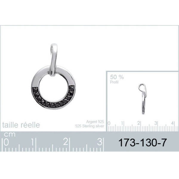 Pendentif en argent 925/000 rhodié et pierres synthétiques.