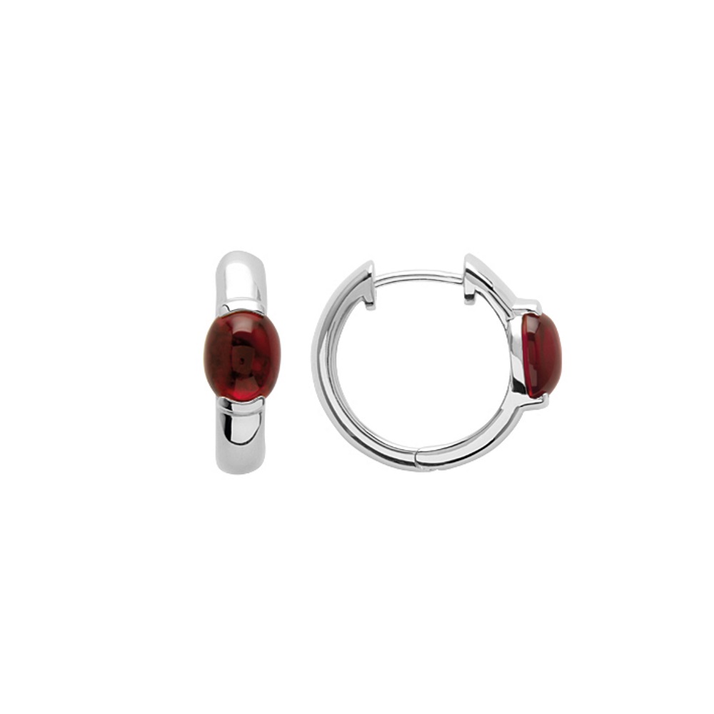 Boucles d'oreilles créoles en argent 925/000 rhodié et pierre d'imitation rubis.