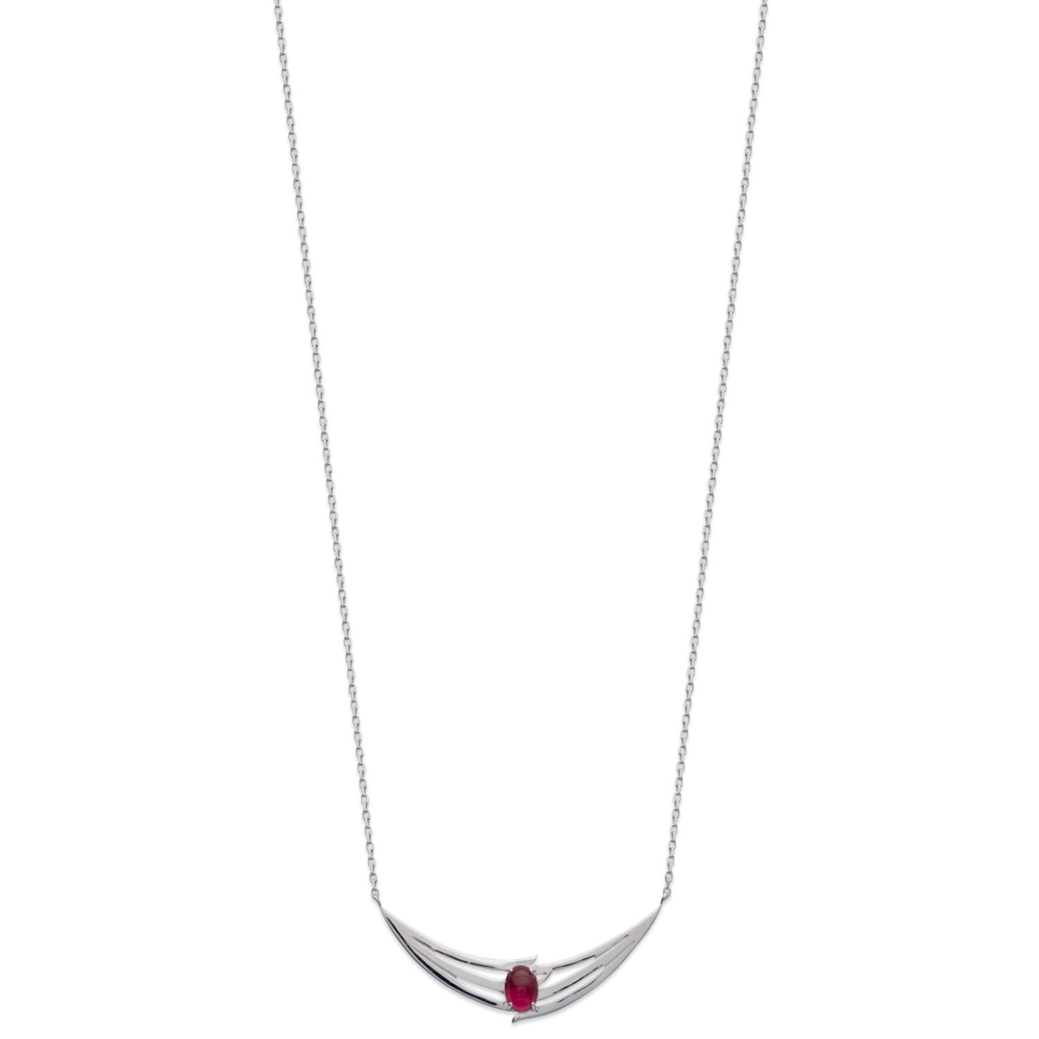 Collier en argent 925/000 rhodié et pierre d'imitation rubis.