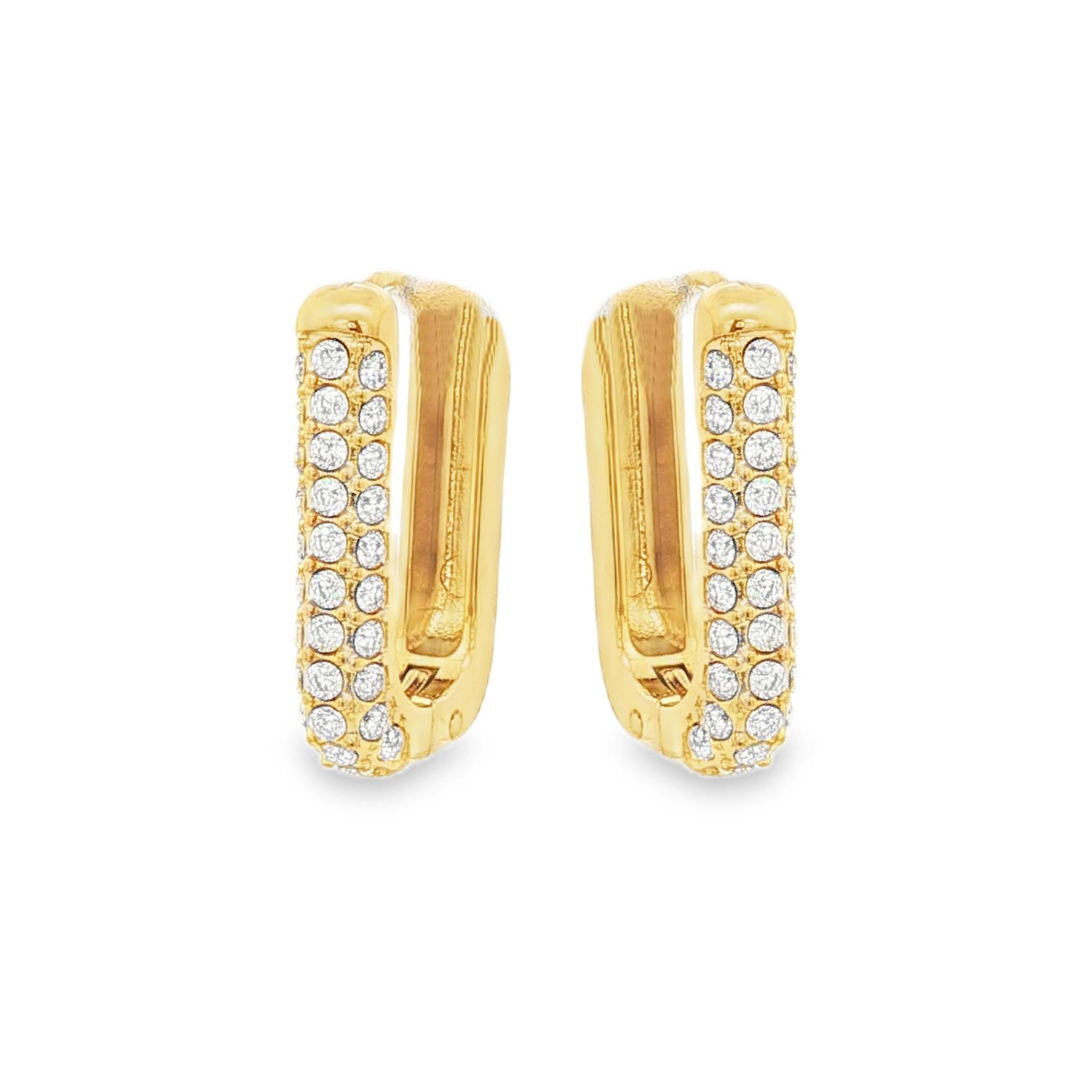 Rehaussez votre style avec ces exquises boucles d'oreilles créoles en acier doré, serties de strass incolores taille brillant.