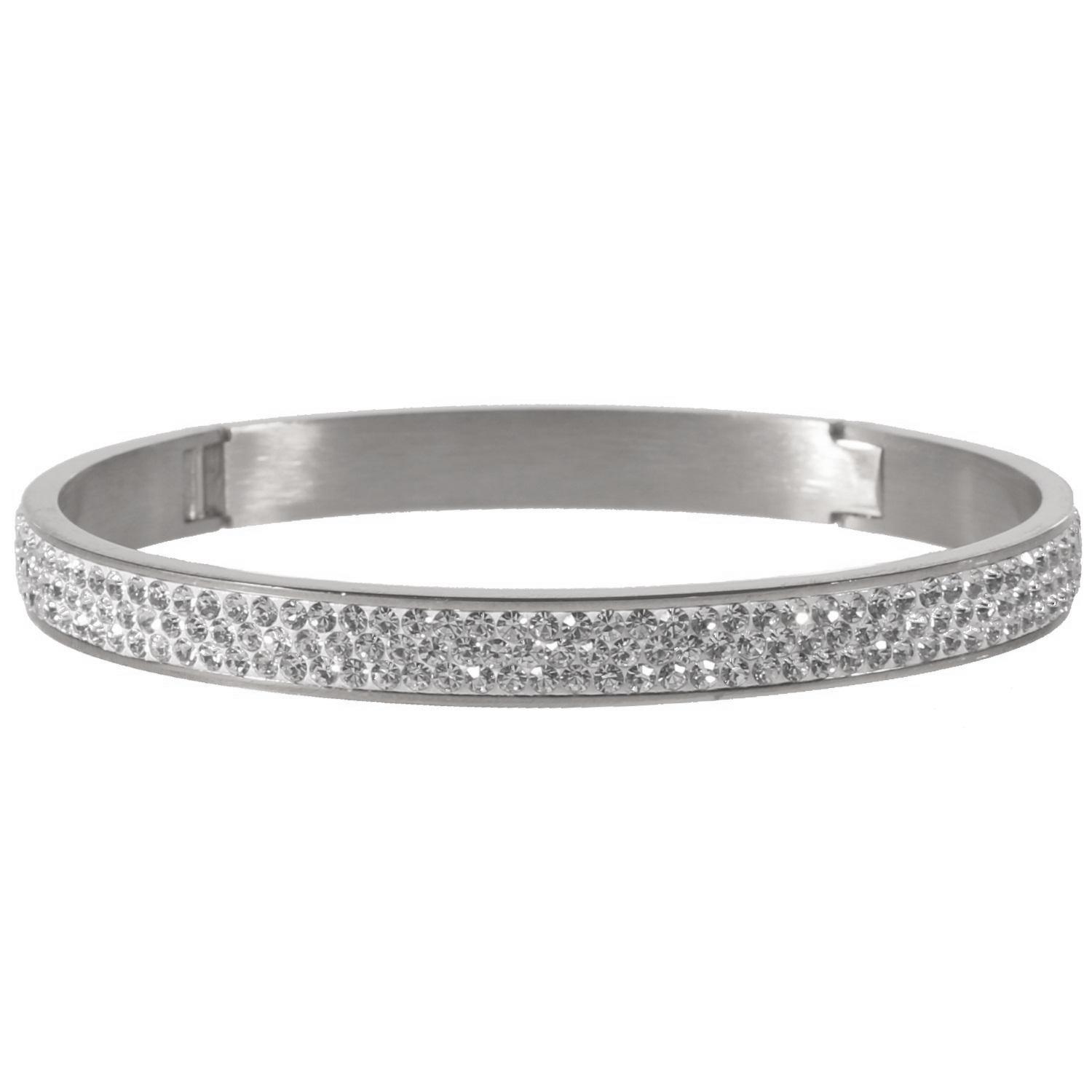 Description Bracelet jonc rigide en acier argenté et strass en verre. Largeur 7 mm Diamètre 61 mm [Guide des tailles] Matière(s) Acier , Verre . L'acier utilisé dans la bijouterie existe sous plusieurs qualités. Nous utilisons principalement la qualité 316L, qualité qui est utilisée en chirurgie. Cet acier est donc inoxydable et reste très résistant. Fermoir Charnière Couleur(s) dominante(s) Argenté Public Adolescent , Adulte . Genre Femme , Fille . Saison Indémodable . Cliquez sur une matière, un thème, une couleur ou une collection pour voir tous les articles associés.