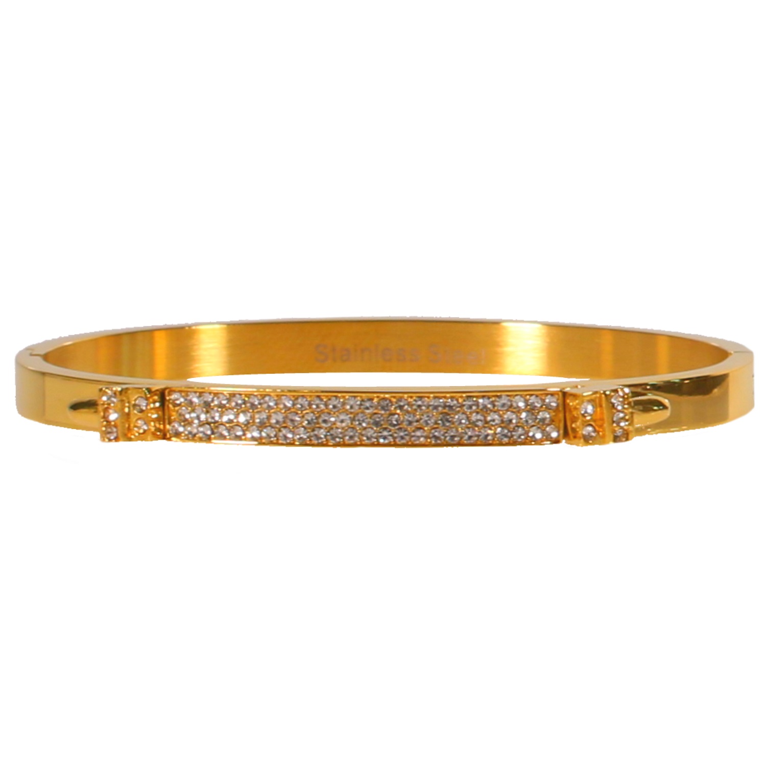Description Bracelet jonc rigide en acier doré et cristaux synthétiques. Largeur 5 mm Diamètre 60 mm [Guide des tailles] Matière(s) Acier , Verre . L'acier utilisé dans la bijouterie existe sous plusieurs qualités. Nous utilisons principalement la qualité 316L, qualité qui est utilisée en chirurgie. Cet acier est donc inoxydable et reste très résistant. Fermoir Charnière Couleur(s) dominante(s) Doré Public Adolescent , Adulte . Genre Femme , Fille . Saison Indémodable . Cliquez sur une matière, un thème, une couleur ou une collection pour voir tous les articles associés.