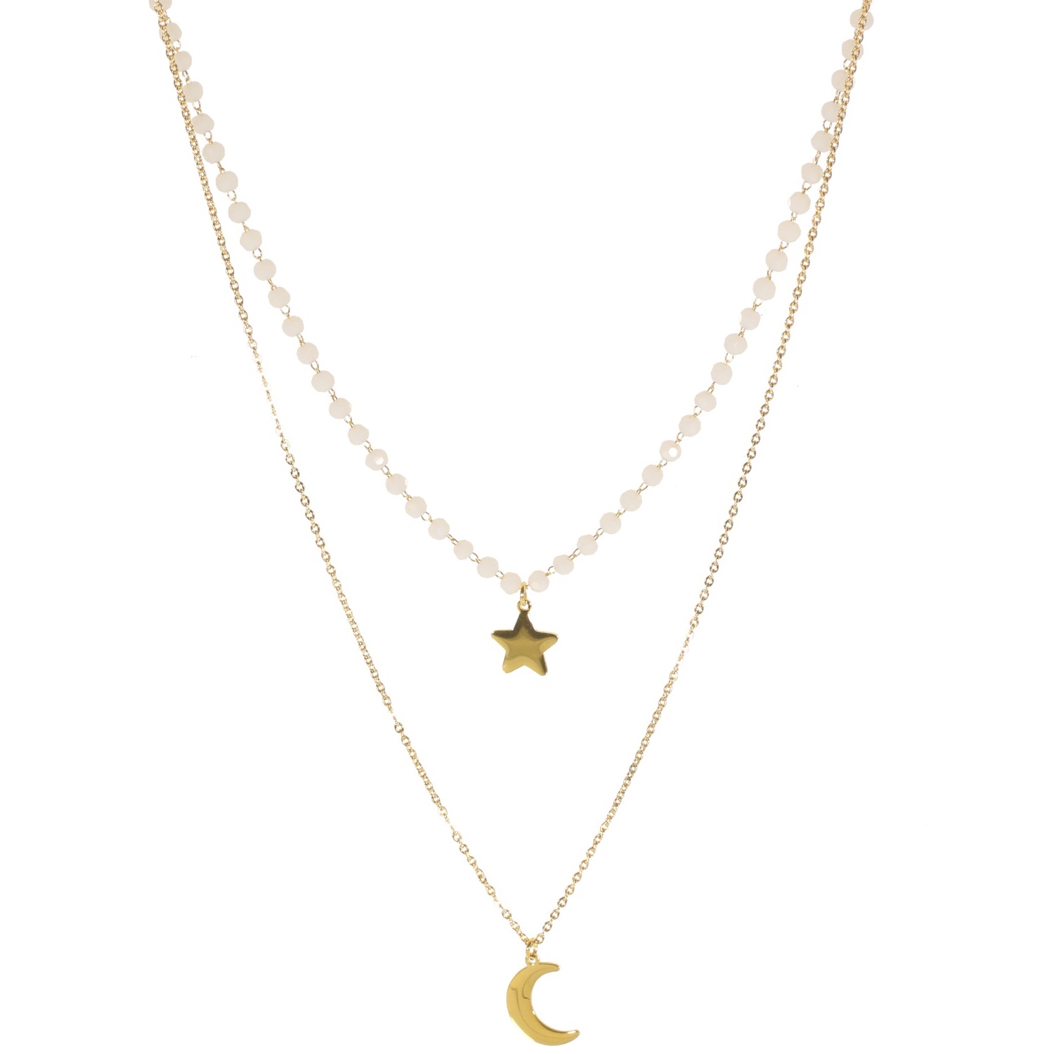 Description Collier multi rangs avec pendentifs étoile et croissant de lune en acier doré et perles de couleur. 2 rangs. Longueur 40+5 cm [Guide des tailles] Matière(s) Acier , Verre . L'acier utilisé dans la bijouterie existe sous plusieurs qualités. Nous utilisons principalement la qualité 316L, qualité qui est utilisée en chirurgie. Cet acier est donc inoxydable et reste très résistant. Fermoir Mousqueton À noter Pendentifs croissant de lune 15 mm x 10 mm et étoile 10 mm x 10 mm Couleur(s) dominante(s) Blanc , Doré Public Adolescent , Adulte . Genre Femme , Fille . Saison Indémodable . Thème(s) Nature . Cliquez sur une matière, un thème, une couleur ou une collection pour voir tous les articles associés.