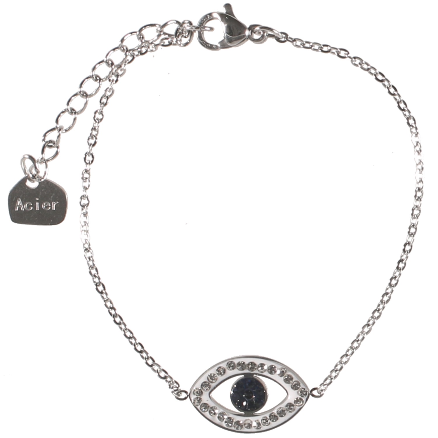 Bracelet avec œil de Turquie en acier argenté et strass en verre. Oeil Oeil de Turquie Ovale  Adolescent Adulte Femme Fille Indémodable Symboles