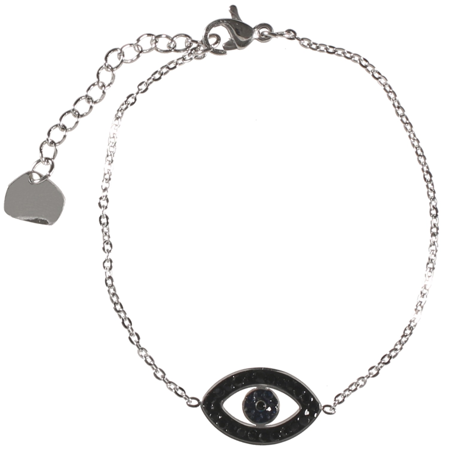 Bracelet avec œil de Turquie en acier argenté et strass en verre.