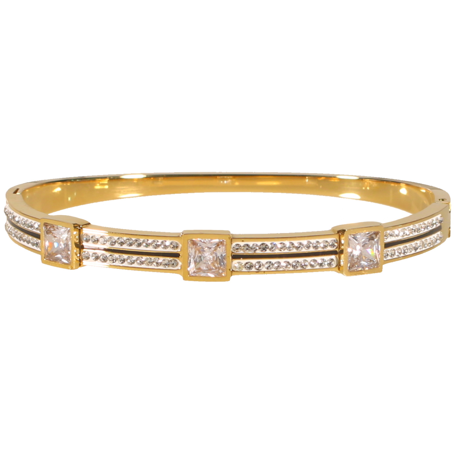 Description Bracelet jonc rigide en acier doré pavé en partie de strass et surmonté de 3 cristaux sertis clos de forme carré. Largeur 7 mm Diamètre 58 mm [Guide des tailles] Matière(s) Acier , Verre . L'acier utilisé dans la bijouterie existe sous plusieurs qualités. Nous utilisons principalement la qualité 316L, qualité qui est utilisée en chirurgie. Cet acier est donc inoxydable et reste très résistant. Fermoir Charnière avec cran Couleur(s) dominante(s) Doré Public Adolescent , Adulte . Genre Femme , Fille . Saison Indémodable . Cliquez sur une matière, un thème, une couleur ou une collection pour voir tous les articles associés.