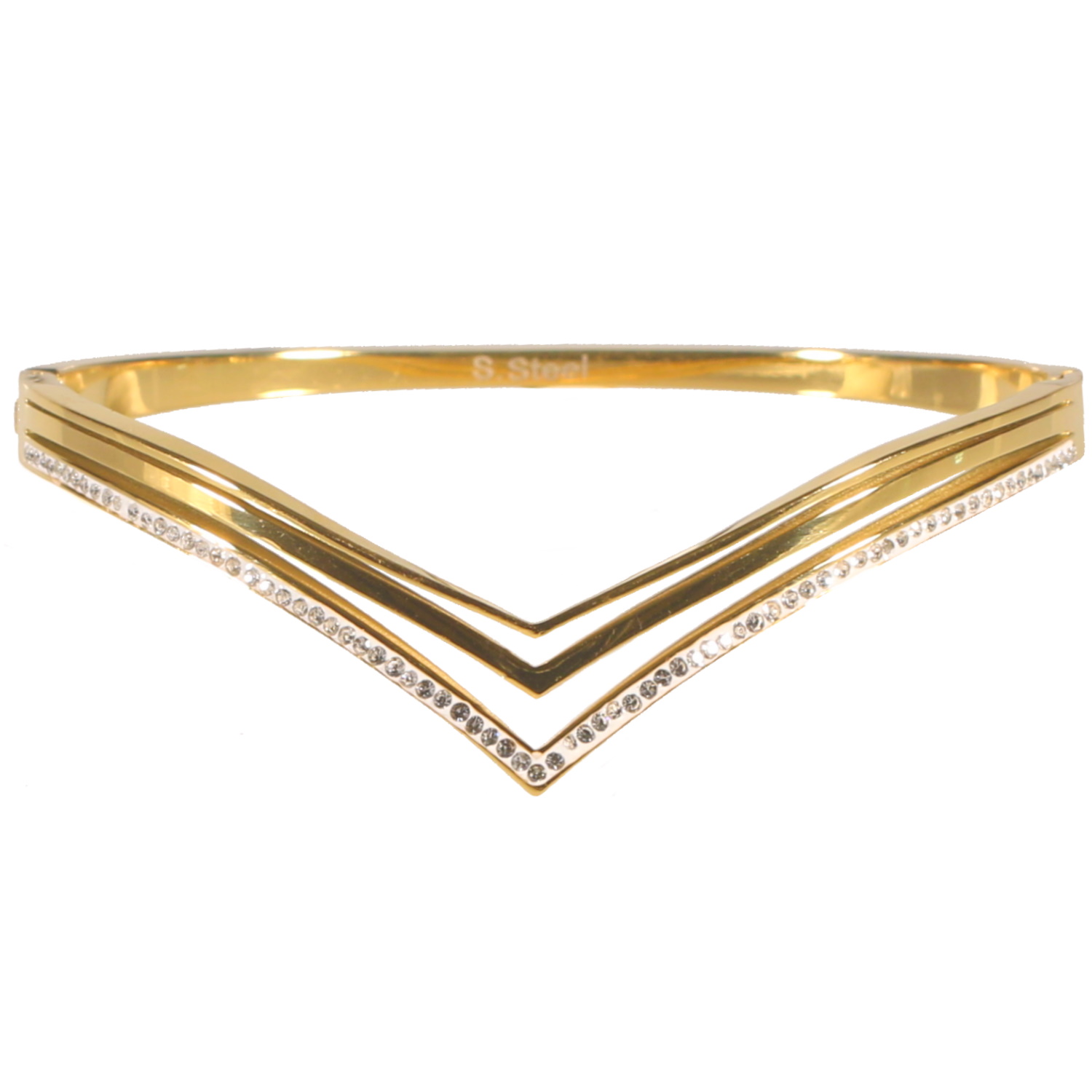 Description Bracelet jonc rigide en forme de V en acier doré pavé en partie de strass. Largeur 15 mm Diamètre 58 mm [Guide des tailles] Matière(s) Acier , Verre . L'acier utilisé dans la bijouterie existe sous plusieurs qualités. Nous utilisons principalement la qualité 316L, qualité qui est utilisée en chirurgie. Cet acier est donc inoxydable et reste très résistant. Fermoir Autre Couleur(s) dominante(s) Doré Public Adolescent , Adulte . Genre Femme , Fille . Saison Indémodable . Cliquez sur une matière, un thème, une couleur ou une collection pour voir tous les articles associés.