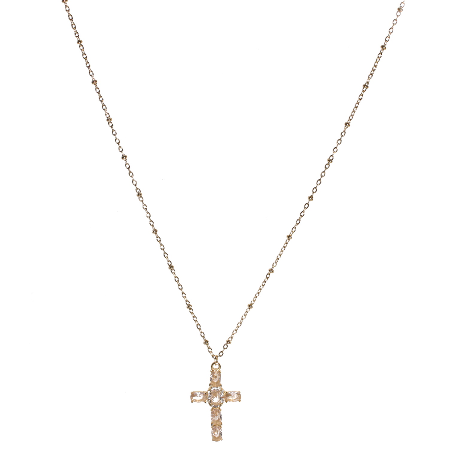 Description Collier composé d'une chaîne en acier doré et d'un pendentif en forme de croix sertie de cristaux et pavée de strass. Fermoir mousqueton avec 5 cm de rallonge. Longueur 40+5 cm [Guide des tailles] Matière(s) Acier , Verre . L'acier utilisé dans la bijouterie existe sous plusieurs qualités. Nous utilisons principalement la qualité 316L, qualité qui est utilisée en chirurgie. Cet acier est donc inoxydable et reste très résistant. Fermoir Mousqueton À noter Pendentif 19x28 mm Couleur(s) dominante(s) Doré Public Adolescent , Adulte . Genre Femme , Fille . Saison Indémodable . Thème(s) Religion . Cliquez sur une matière, un thème, une couleur ou une collection pour voir tous les articles associés.