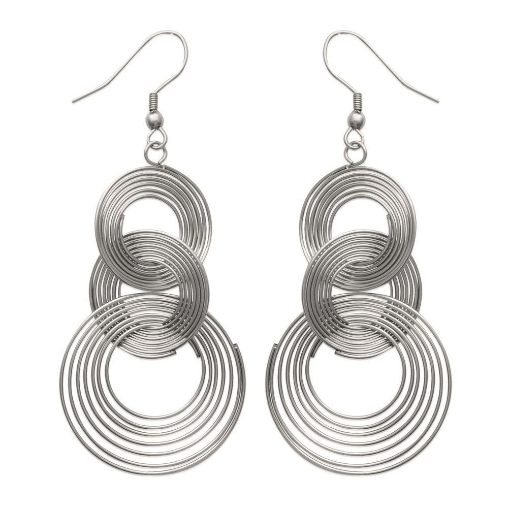 Description Boucles d'oreilles en acier. Largeur 30 mm Hauteur 130 mm Matière(s) Acier . L'acier utilisé dans la bijouterie existe sous plusieurs qualités. Nous utilisons principalement la qualité 316L, qualité qui est utilisée en chirurgie. Cet acier est donc inoxydable et reste très résistant. Fermoir Crochets Couleur(s) dominante(s) Argenté Public Adulte . Genre Femme . Saison Indémodable . Rayon en magasin I92 Cliquez sur une matière, un thème, une couleur ou une collection pour voir tous les articles associés.