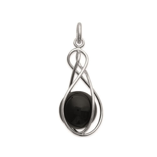 Pendentif en argent 925/000 rhodié et pierre synthétique noire.