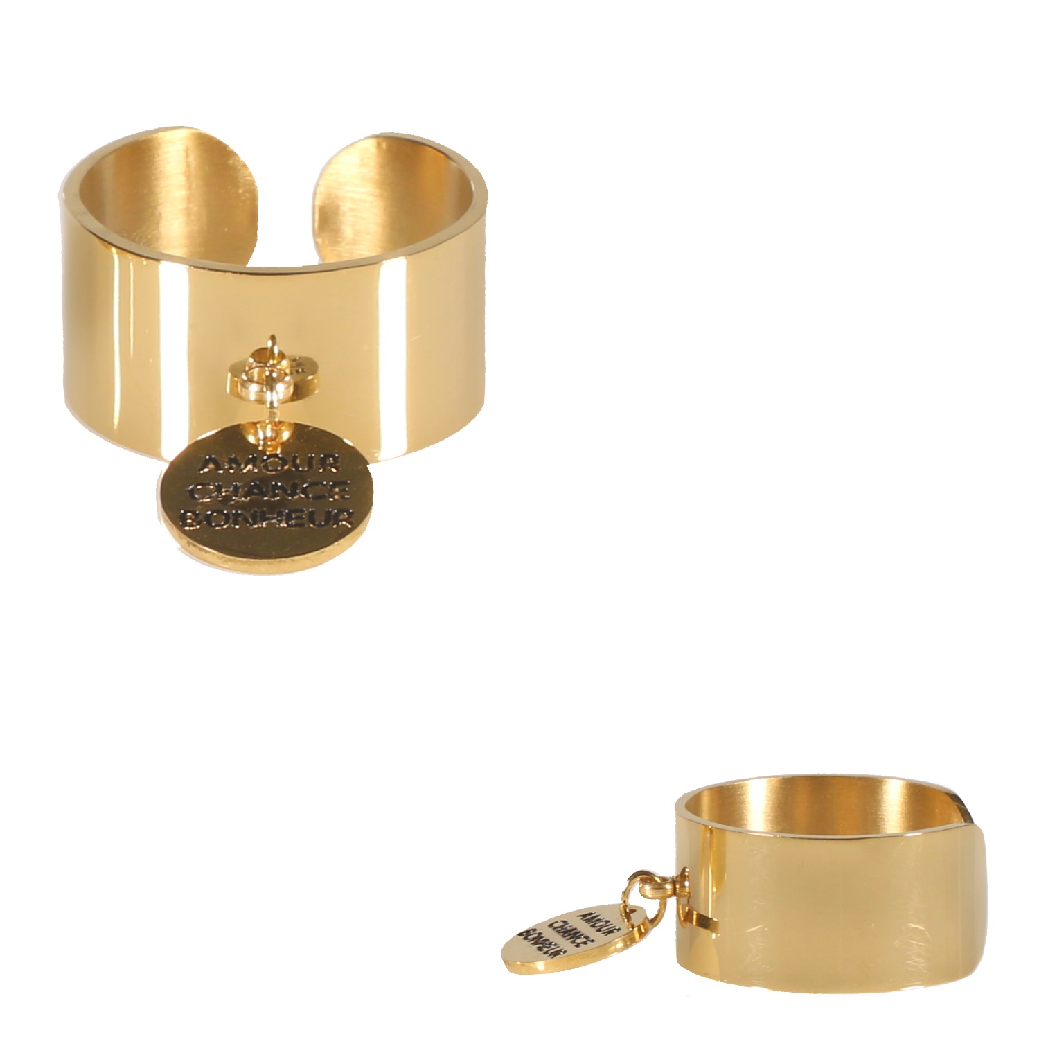 Description Bague en acier doré avec pendant rond et l'inscription en noir Amour Chance Bonheur. Largeur 10 mm Matière(s) Acier . L'acier utilisé dans la bijouterie existe sous plusieurs qualités. Nous utilisons principalement la qualité 316L, qualité qui est utilisée en chirurgie. Cet acier est donc inoxydable et reste très résistant. À noter Taille ajustable Couleur(s) dominante(s) Doré Public Adolescent , Adulte . Genre Femme , Fille . Saison Indémodable . Thème(s) Amour , Message . Cliquez sur une matière, un thème, une couleur ou une collection pour voir tous les articles associés.