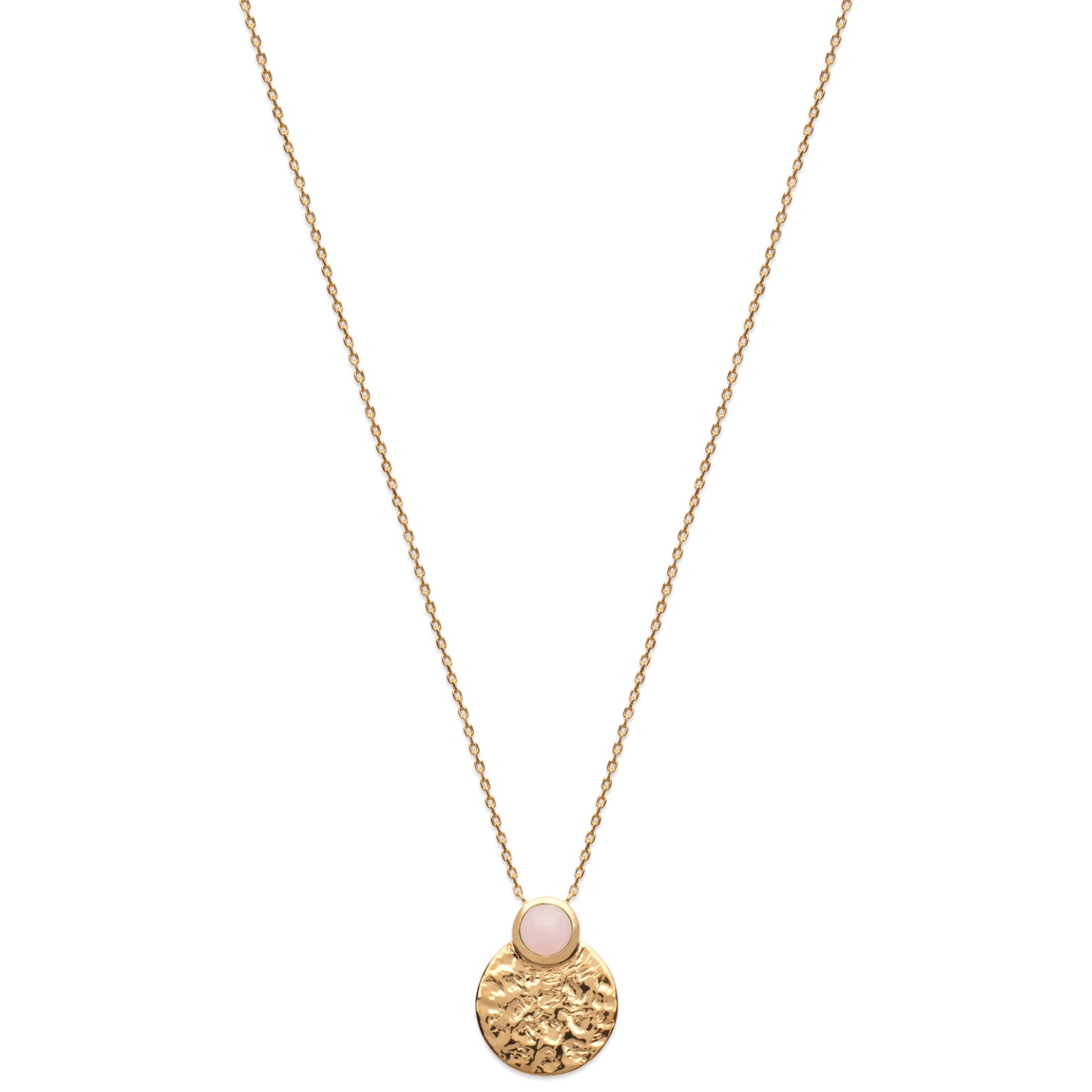 Pendentif avec pendentif pastille martelée en plaqué or et quartz rose serti clos.