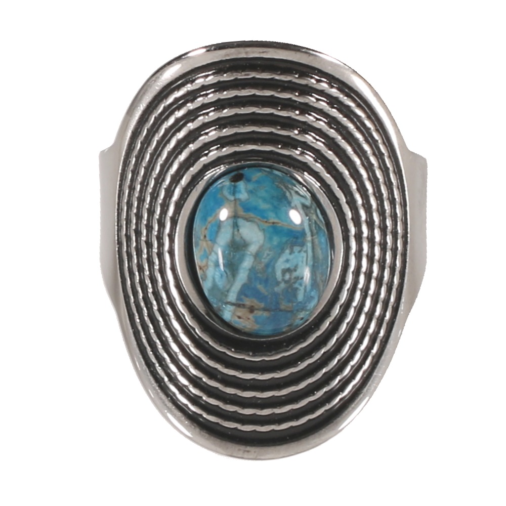 Description Bague de forme ovale aux motifs en relief en acier argenté surmontée d'une pierre sertie clos de couleur bleue. Taille ajustable. Largeur 25 mm Matière(s) Acier , Rocaille . L'acier utilisé dans la bijouterie existe sous plusieurs qualités. Nous utilisons principalement la qualité 316L, qualité qui est utilisée en chirurgie. Cet acier est donc inoxydable et reste très résistant. Couleur(s) dominante(s) Argenté , Bleu Public Adolescent , Adulte . Genre Femme , Fille . Saison Indémodable . Cliquez sur une matière, un thème, une couleur ou une collection pour voir tous les articles associés.