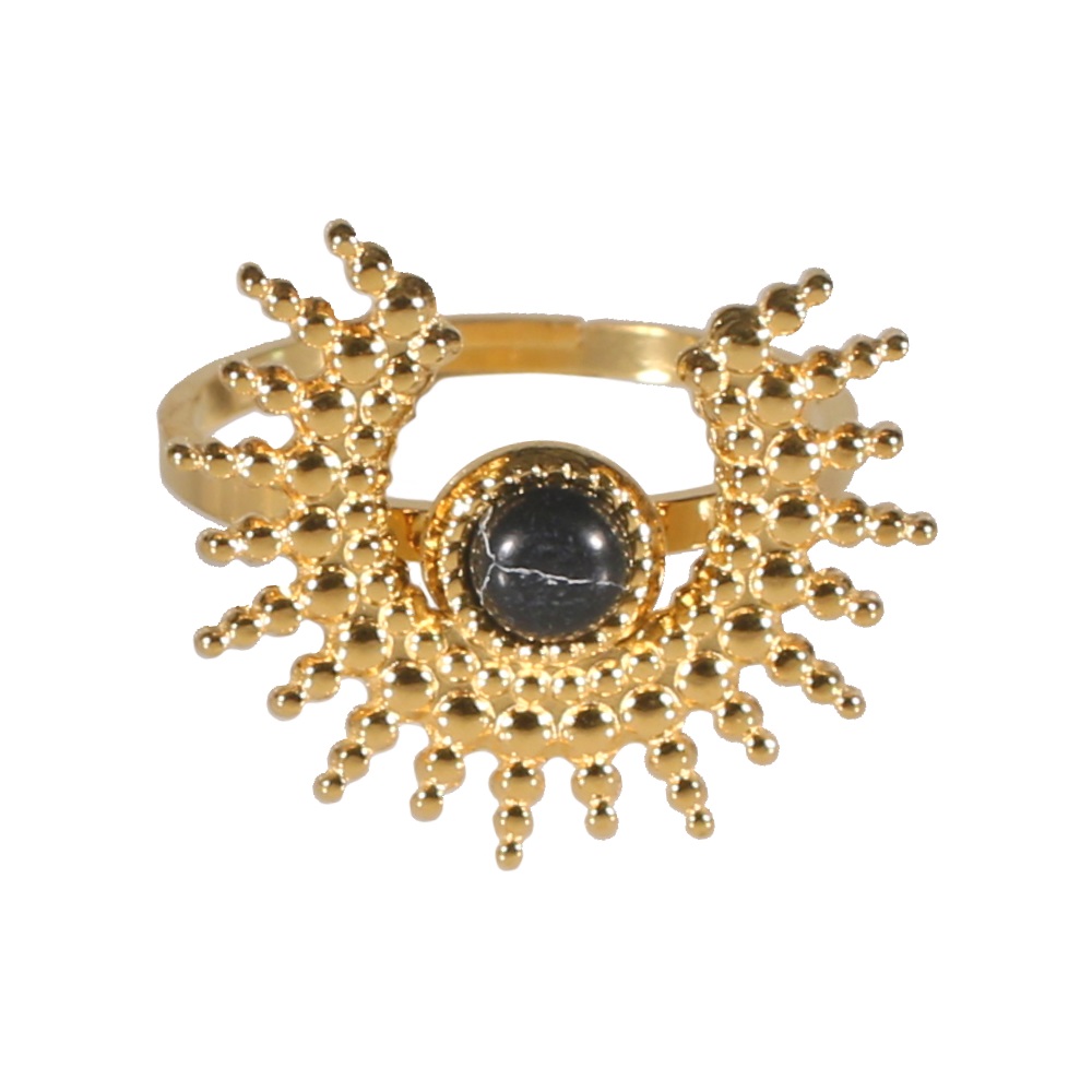 Description Bague composée d'un cercle incomplet avec rayons de soleil en acier doré surmontée d'une pierre de couleur. Taille ajustable. Largeur 17 mm Matière(s) Acier , Rocaille . L'acier utilisé dans la bijouterie existe sous plusieurs qualités. Nous utilisons principalement la qualité 316L, qualité qui est utilisée en chirurgie. Cet acier est donc inoxydable et reste très résistant. Couleur(s) dominante(s) Doré , Noir Public Adolescent , Adulte . Genre Femme , Fille . Saison Indémodable . Thème(s) Nature . Collection My Sun Cliquez sur une matière, un thème, une couleur ou une collection pour voir tous les articles associés.