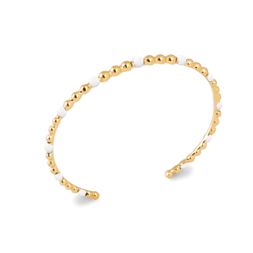 Description Bracelet jonc ouvert à boules en plaqué or 18 carats et émail de couleur blanche. Largeur 4 mm Diamètre 58 mm [Guide des tailles] Matière(s) Email , Plaqué or . Nos bijoux en plaqué or sont faits sur une base de laiton et recouverts d'or 18 carats à 3 microns sans dispersion. Cela signifie que nous garantissons 3 microns d'or sur n'importe quelle partie du bijou. Sur la plupart de nos bijoux empierrés, nous montons à 5 microns d'or 18 carats. Pour finir, nous faisons également une finition avec de l'or 24 carats afin de donner un plus bel éclat à nos bijoux. Fermoir Aucun Couleur(s) dominante(s) Blanc , Doré Public Adolescent , Adulte . Genre Femme , Fille . Saison Indémodable . Collection Zeste d'été Cliquez sur une matière, un thème, une couleur ou une collection pour voir tous les articles associés.