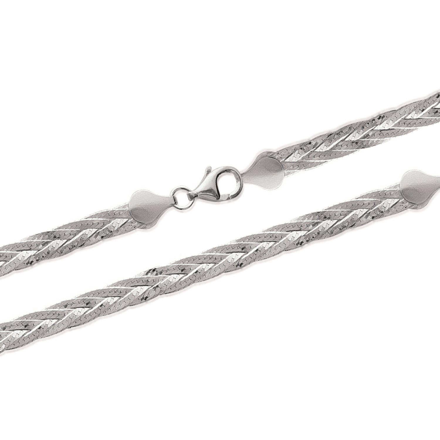 Description Bracelet en argent 925/000. Longueur 18 cm [Guide des tailles] Largeur 5 mm Maille Tresse Matière(s) Argent 925 . Les bijoux en argent que nous vous proposons sont faits d'argent 925/000. C'est-à-dire que chaque gramme de métal est composé de 92.5% d'argent pur et de 7.5 % d'autres métaux (essentiellement du cuivre). En effet, sous sa forme pure (soit 100%), l'argent est trop mou et ne peut être suffisamment rigide pour tenir sous forme de bijou. Nous le mêlons donc à d'autres métaux. Nous apposons un poinçon 925 sur tous nos bijoux afin de vous garantir que chaque création est bien en argent 925. Poids d'argent 4,98 gramme(s) Fermoir Mousqueton Couleur(s) dominante(s) Argenté Public Adulte . Genre Femme . Saison Indémodable . Collection Argent volume Rayon en magasin T31 Cliquez sur une matière, un thème, une couleur ou une collection pour voir tous les articles associés.