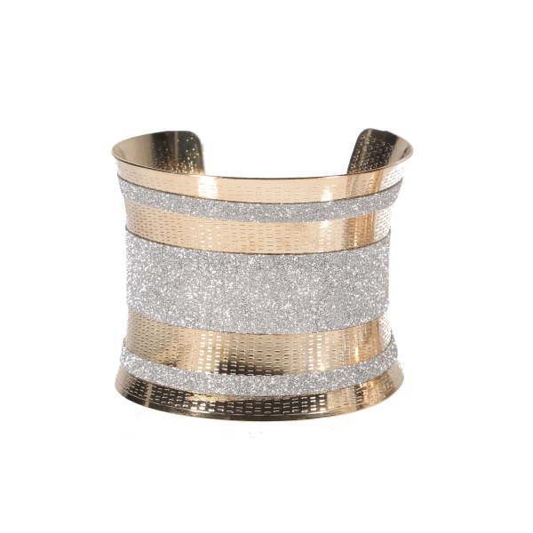 Bracelet fantaisie rigide en métal doré et strass.