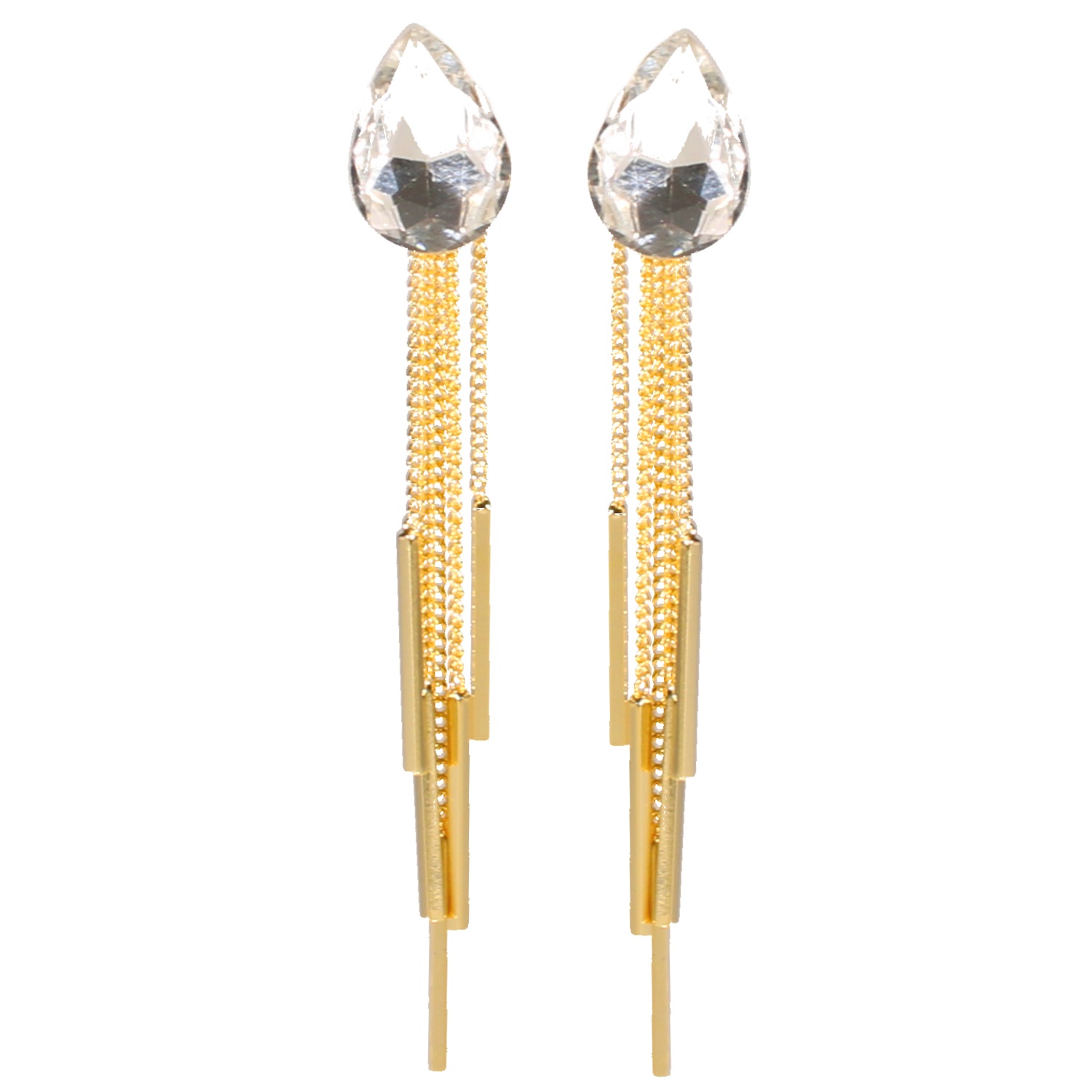 Description Boucles d'oreilles fantaisie pendantes en métal doré et cristaux ovales en verre. Cliquez sur une matière, un thème, une couleur ou une collection pour voir tous les articles associés.