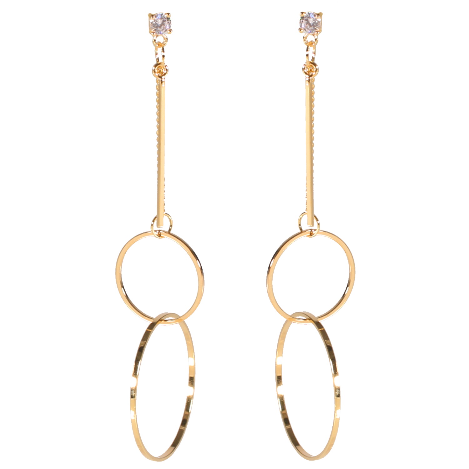 Description Boucles d'oreilles fantaisie pendantes cercles en métal doré et cristaux sertis griffe. Cliquez sur une matière, un thème, une couleur ou une collection pour voir tous les articles associés.