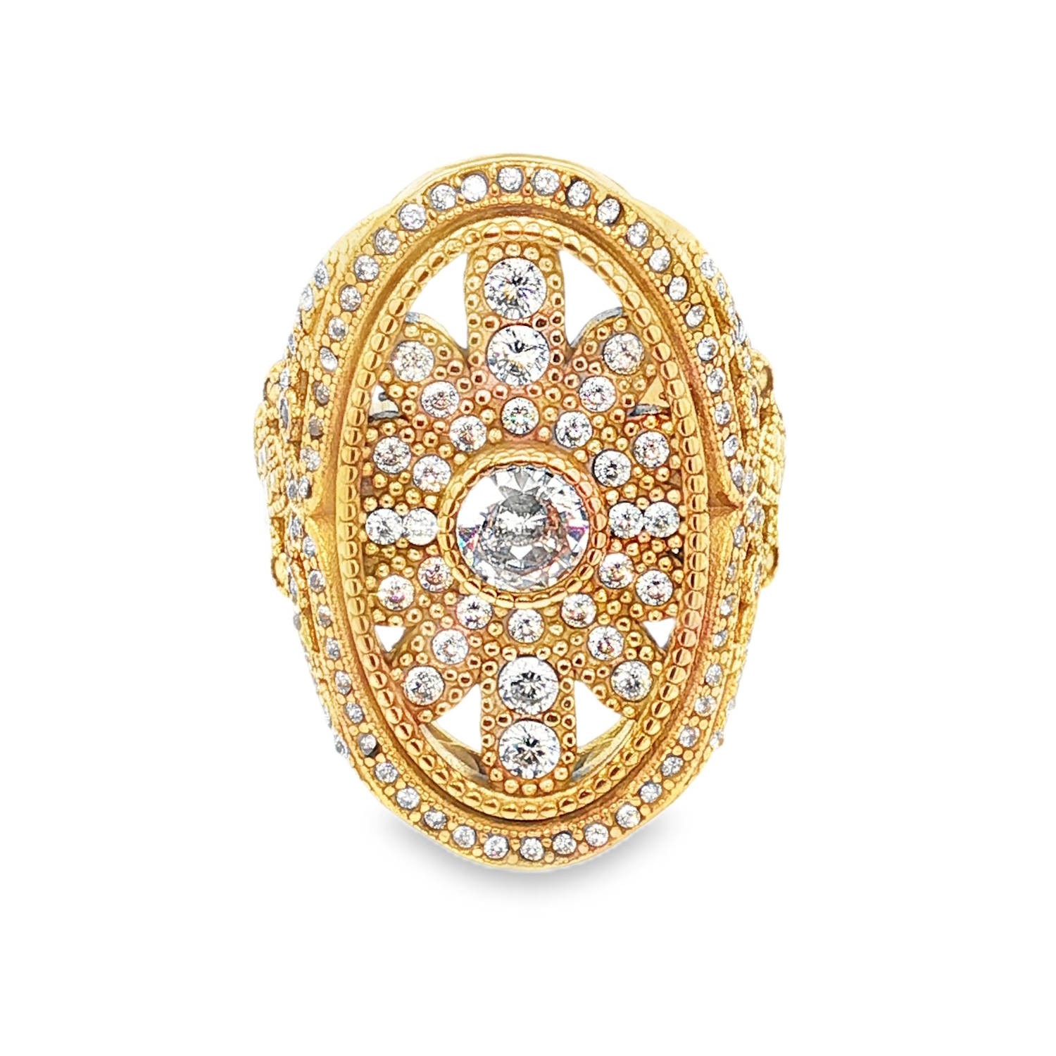 Description Captivant bague cocktail en acier doré, sublimée par un strass central taille brillant. Son design audacieux et raffiné en fait un bijou d'exception. La monture richement ornée met en valeur l'éclat du strass, créant un effet de lumière incomparable. Une pièce maîtresse pour celles qui recherchent l'élégance et le caractère. Taille ajustable. Largeur 28 mm Matière(s) Acier , Verre . L'acier utilisé dans la bijouterie existe sous plusieurs qualités. Nous utilisons principalement la qualité 316L, qualité qui est utilisée en chirurgie. Cet acier est donc inoxydable et reste très résistant. Fermoir Aucun Couleur(s) dominante(s) Doré Public Adolescent , Adulte . Genre Femme , Fille . Saison Indémodable . Cliquez sur une matière, un thème, une couleur ou une collection pour voir tous les articles associés.