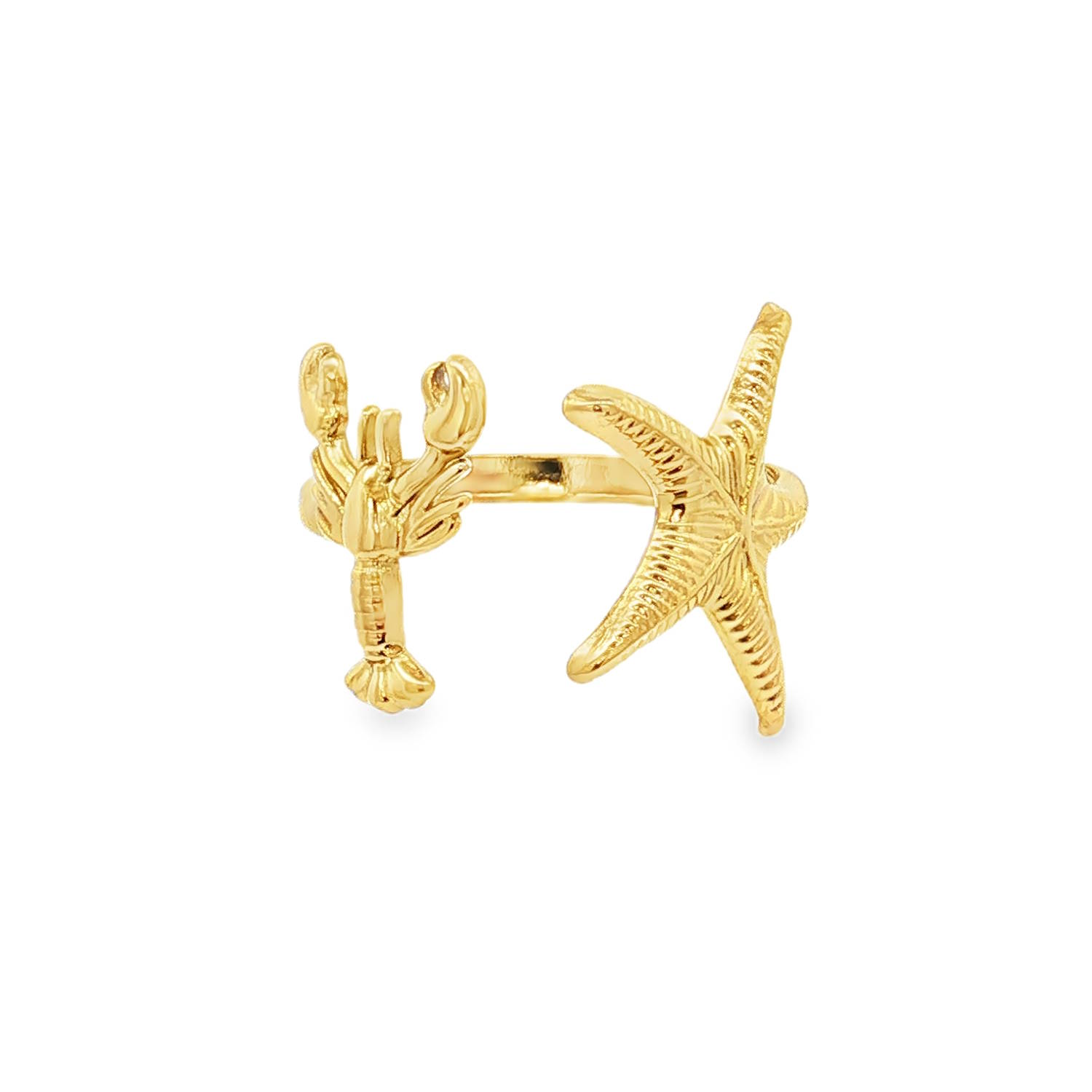 Description Apportez une touche de fantaisie et d'élégance iodée à votre main avec cette bague ouverte au design unique. Ce bijou capture l'essence des fonds marins à travers un duo iconique et plein de caractère. Cette bague se distingue par son style Toi et Moi revisité, où deux motifs emblématiques de l'océan semblent se rejoindre sur le doigt. Le homard, ciselé avec précision, apporte une note audacieuse et originale. Ses pinces et sa carapace texturée témoignent d'un travail de détail soigné. L'étoile de mer, symbole de régénération et de chance, elle arbore des reliefs travaillés qui captent la lumière à chaque mouvement. Sa structure ajustable permet de l'adapter facilement à toutes les morphologies de doigts. Largeur 18 mm Matière(s) Acier . L'acier utilisé dans la bijouterie existe sous plusieurs qualités. Nous utilisons principalement la qualité 316L, qualité qui est utilisée en chirurgie. Cet acier est donc inoxydable et reste très résistant. Fermoir Aucun Couleur(s) dominante(s) Doré Public Adolescent , Adulte . Genre Femme , Fille . Saison Indémodable . Thème(s) Animaux , Nature . Collection Seaside Cliquez sur une matière, un thème, une couleur ou une collection pour voir tous les articles associés.