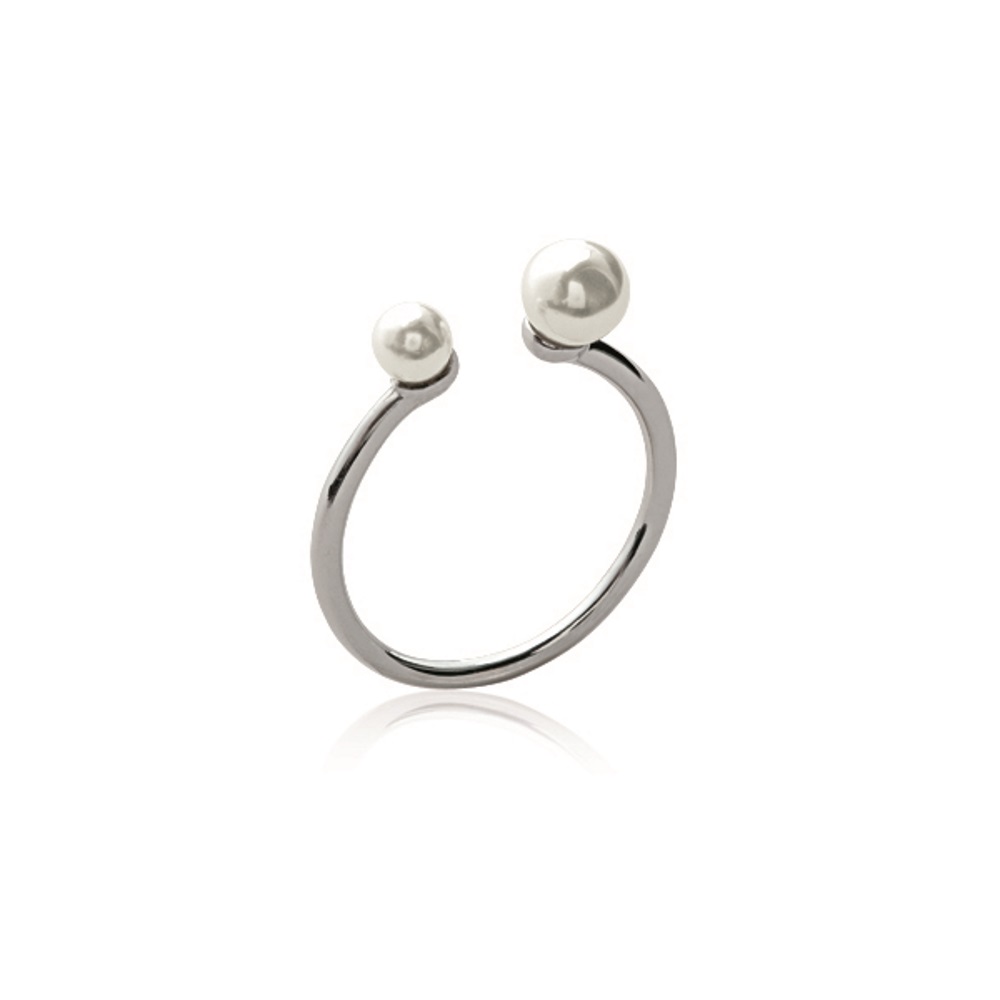 Bague en argent 925/000 rhodié et perles synthétiques.