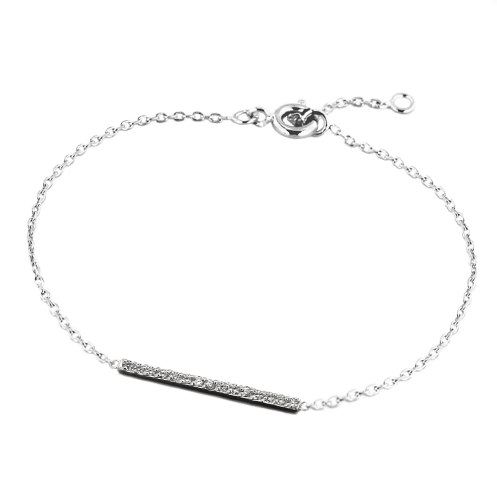 Description Bracelet en argent 925/000 rhodié et oxyde de zirconium. Longueur 15.5/17.5 cm [Guide des tailles] Largeur 2 mm Matière(s) Argent 925 rhodié , Zirconium . Afin de protéger votre bijou de l'oxydation naturelle de l'argent, il est recouvert d'une couche de rhodium (un métal rare et précieux) qui garantira sa brillance dans le temps et préviendra les risques d'allergie. Notez cependant, que le bijou est alors d'une teinte plus grisée et moins brillante que l'argent non rhodié. Poids d'argent 1 gramme(s) Fermoir Mousqueton Couleur(s) dominante(s) Argenté Public Adolescent , Adulte . Genre Femme , Fille . Saison Indémodable . Rayon en magasin T40 Cliquez sur une matière, un thème, une couleur ou une collection pour voir tous les articles associés.