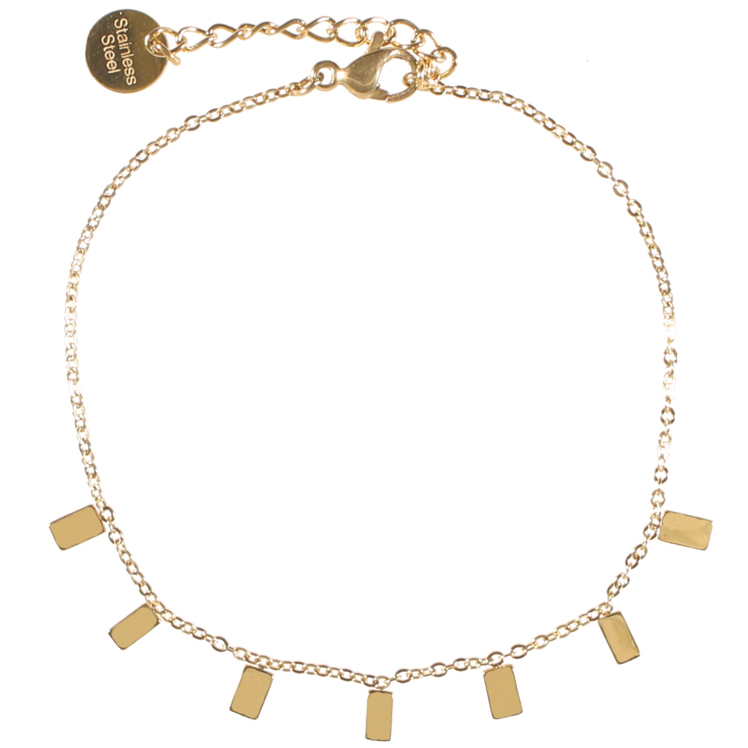 Description Bracelet avec pampilles rectangulaires en acier doré. Fermoir mousqueton avec 3 cm de rallonge. Cliquez sur une matière, un thème, une couleur ou une collection pour voir tous les articles associés.